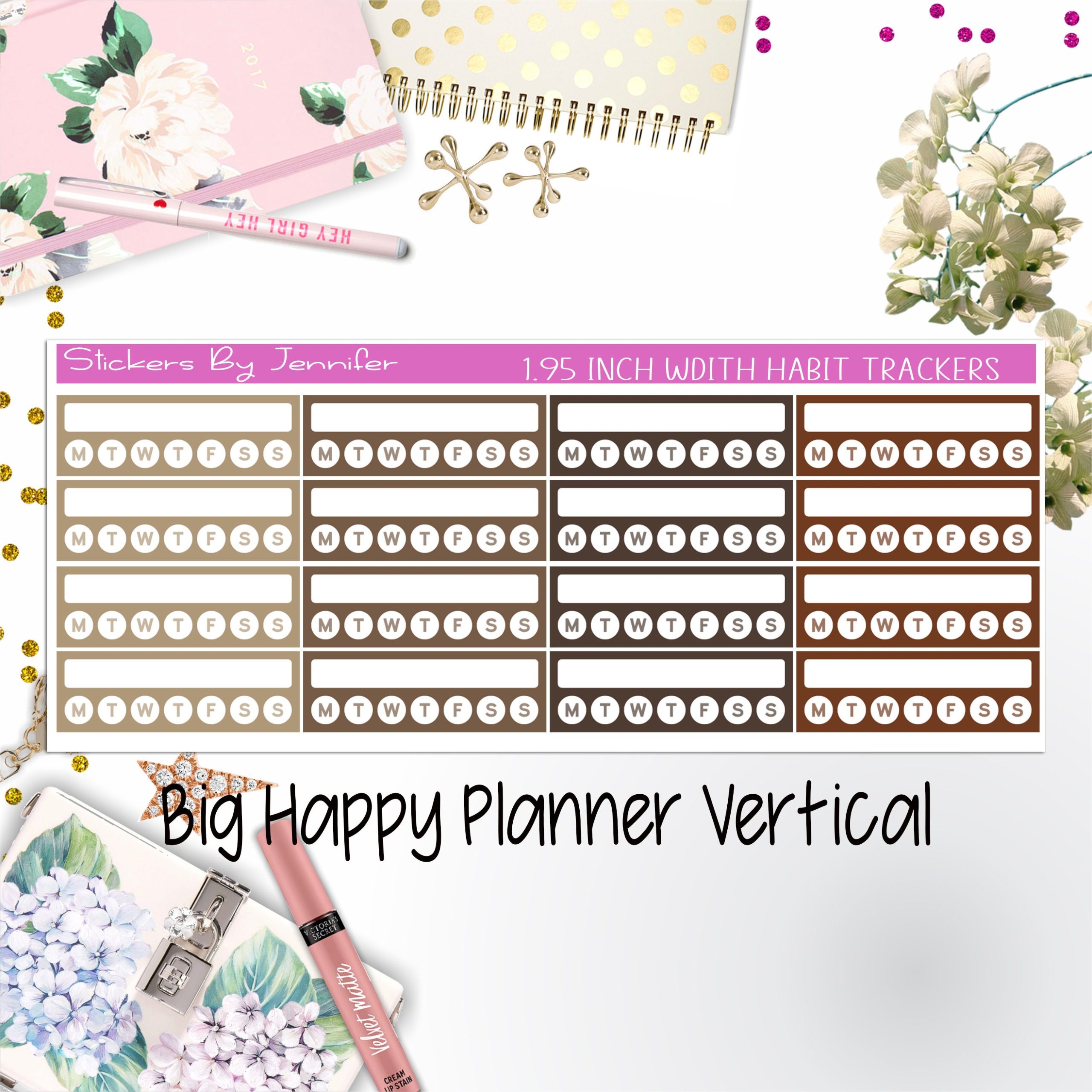 Each sticker is measured 1.95 width. The stickers are sized to fit Vertical Big Happy Planners.