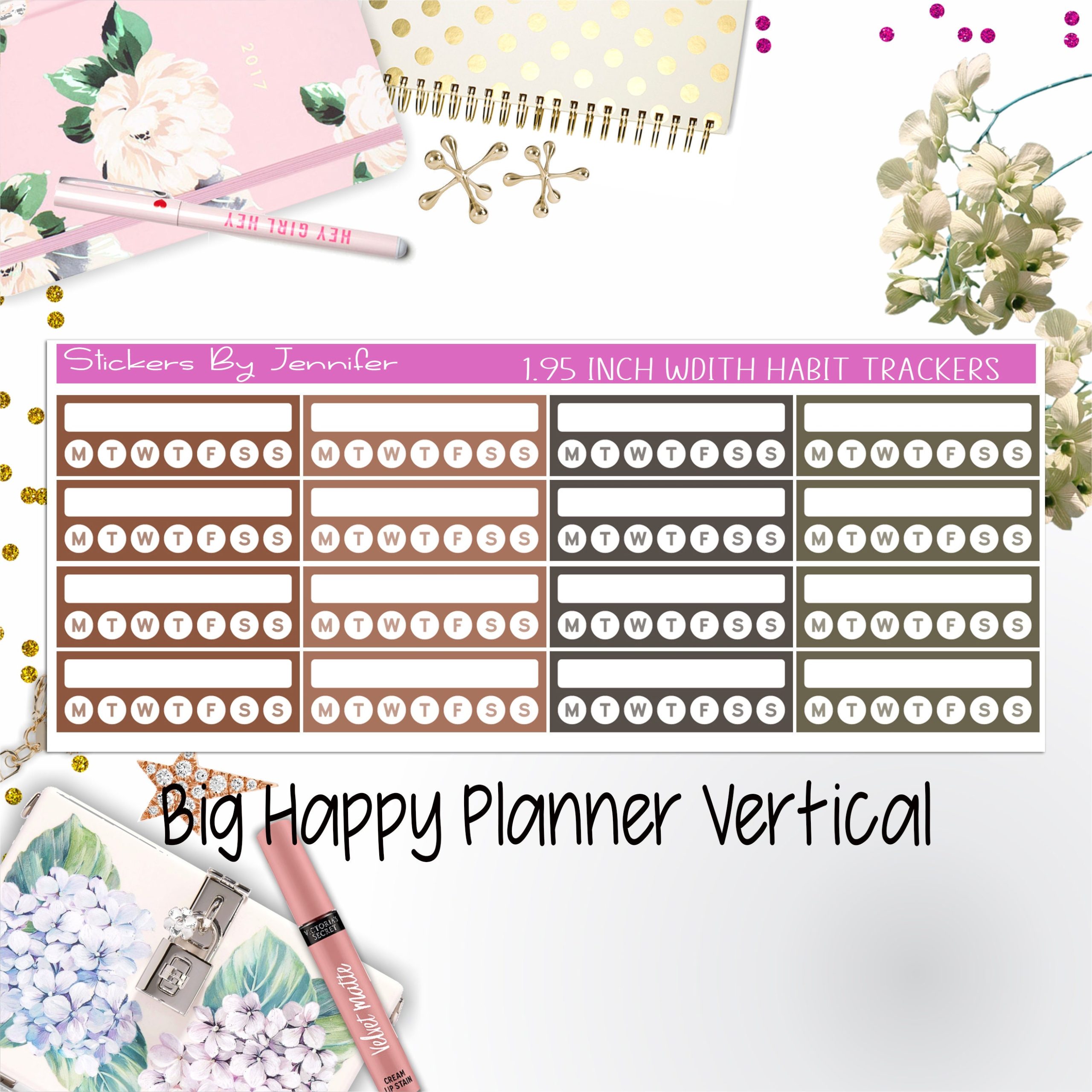 Each sticker is measured 1.95 width. The stickers are sized to fit Vertical Big Happy Planners.
