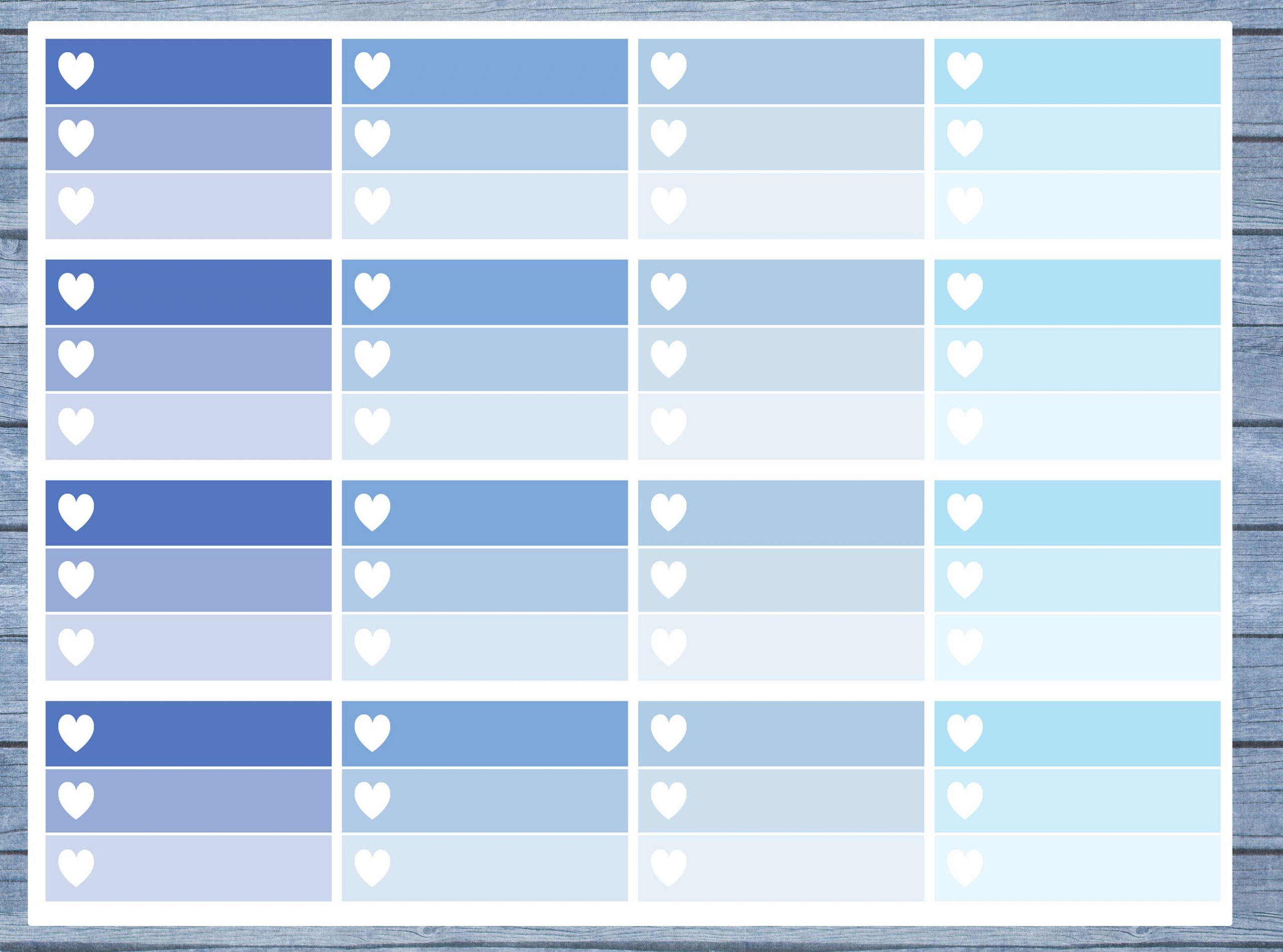 16 Half box ombre planner stickers in the following sizes: