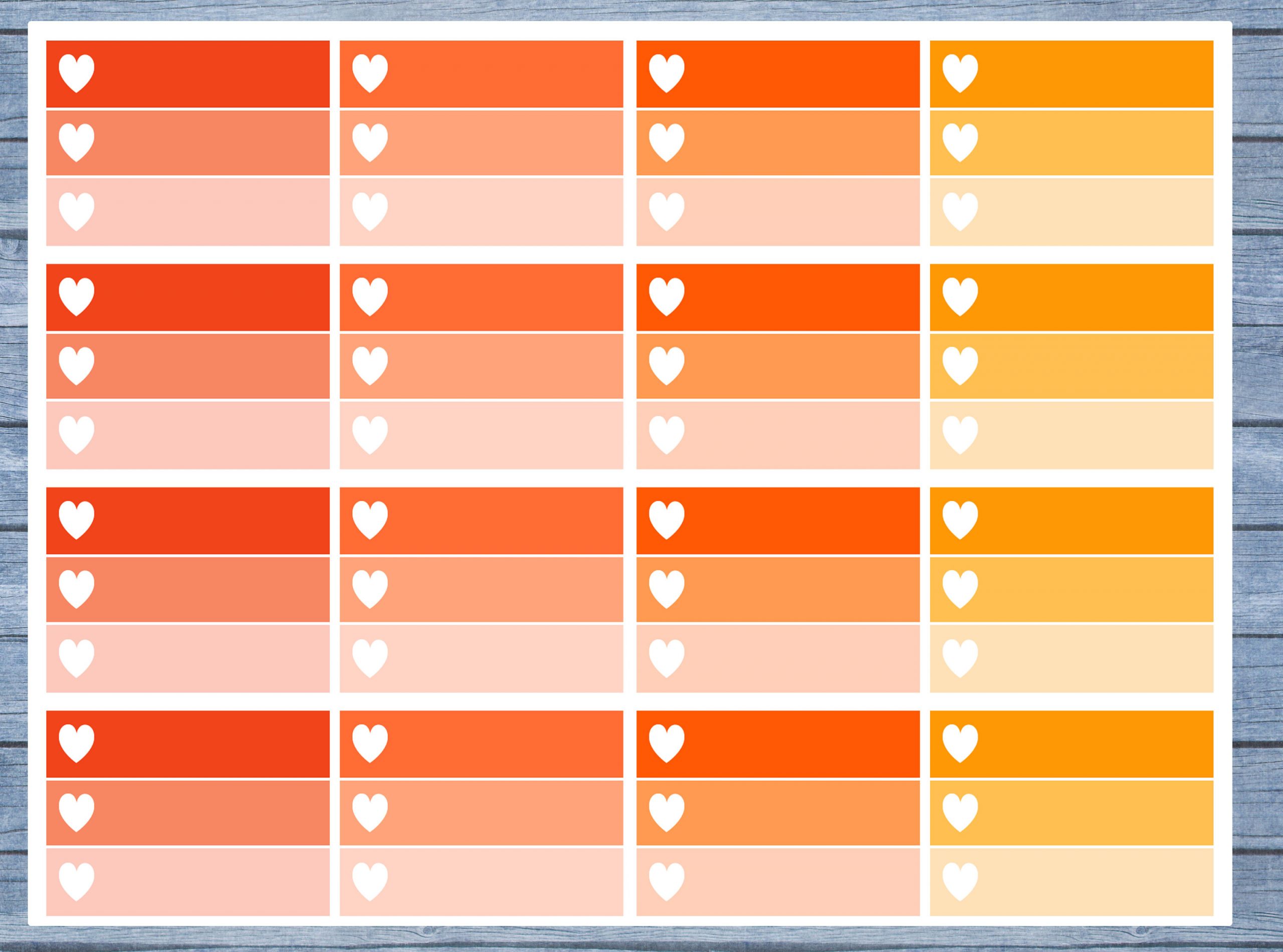 16 Half box ombre planner stickers in the following sizes:
