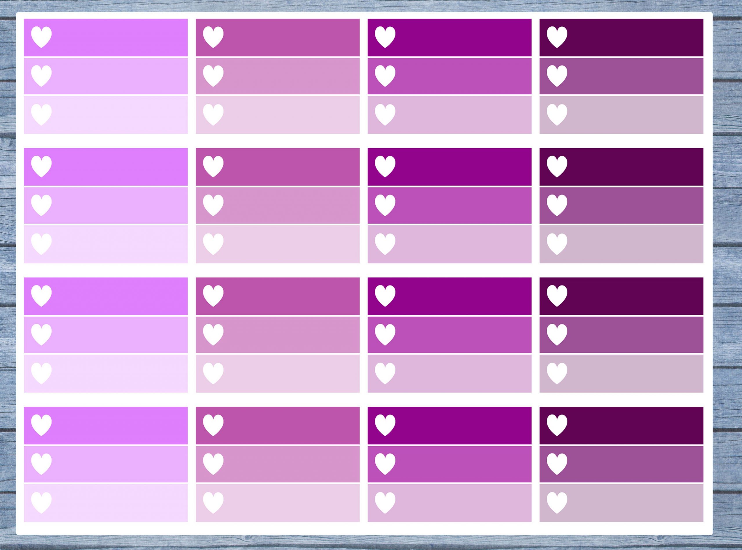 16 Half box ombre planner stickers in the following sizes: