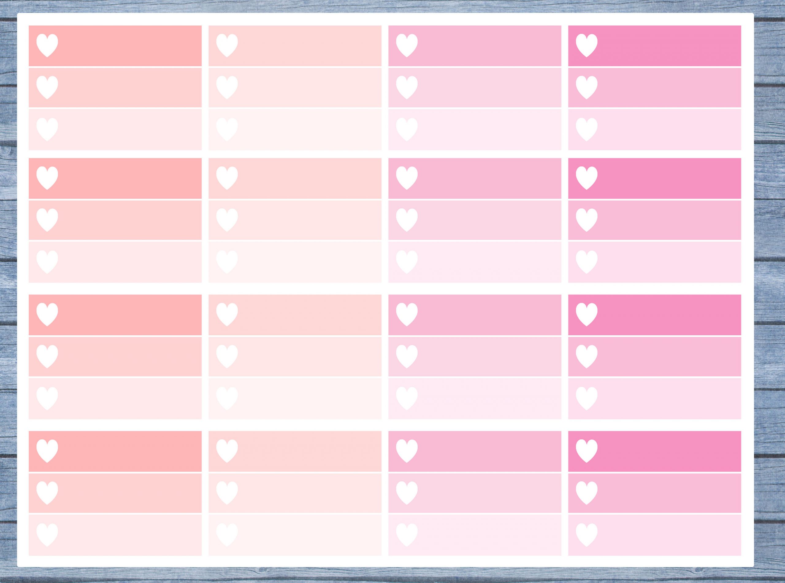 16 Half box ombre planner stickers in the following sizes: