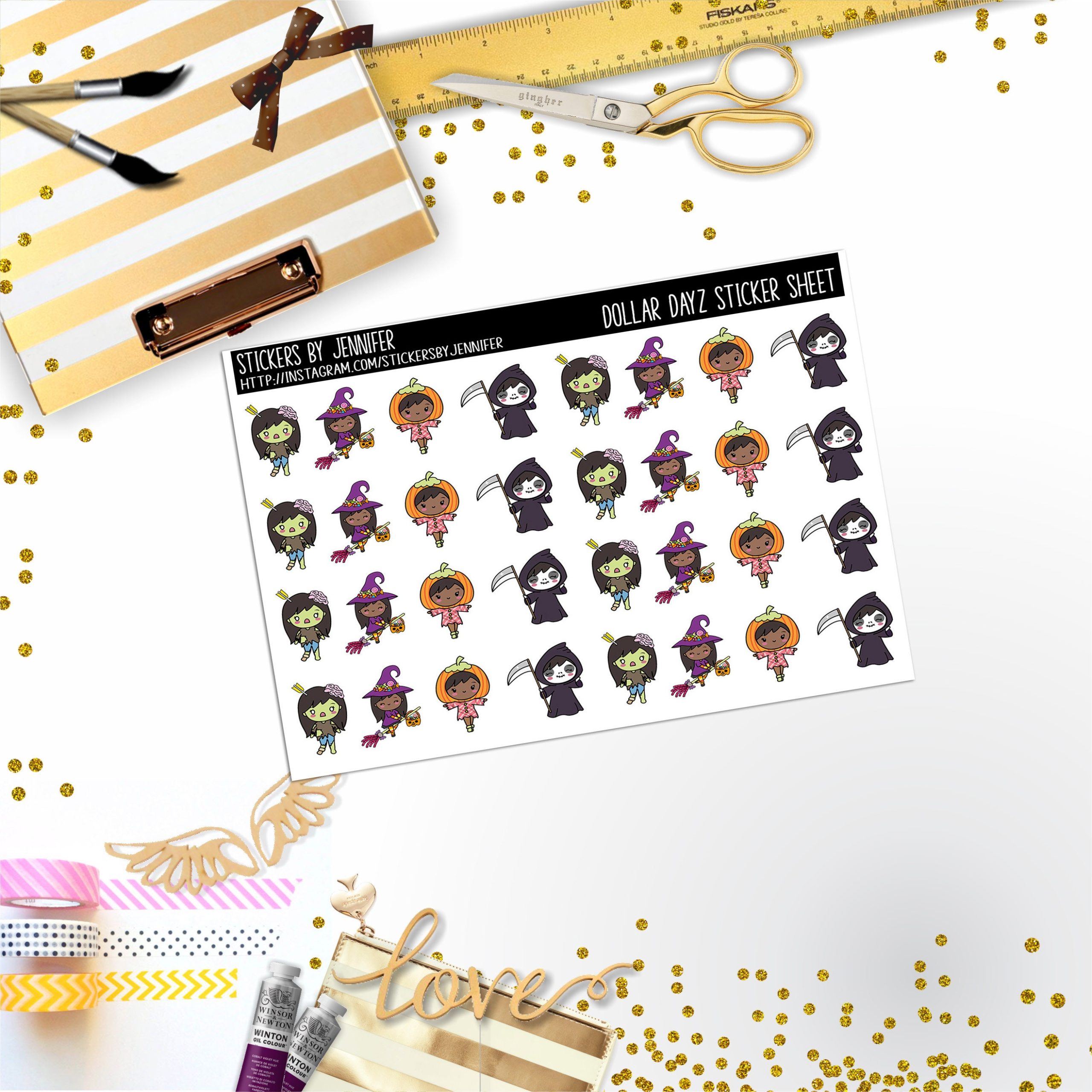 Halloween Character Girl Mini DD027, Planner Stickers, Bullet Journal, Functional Planner Stickers, Stationary Stickers