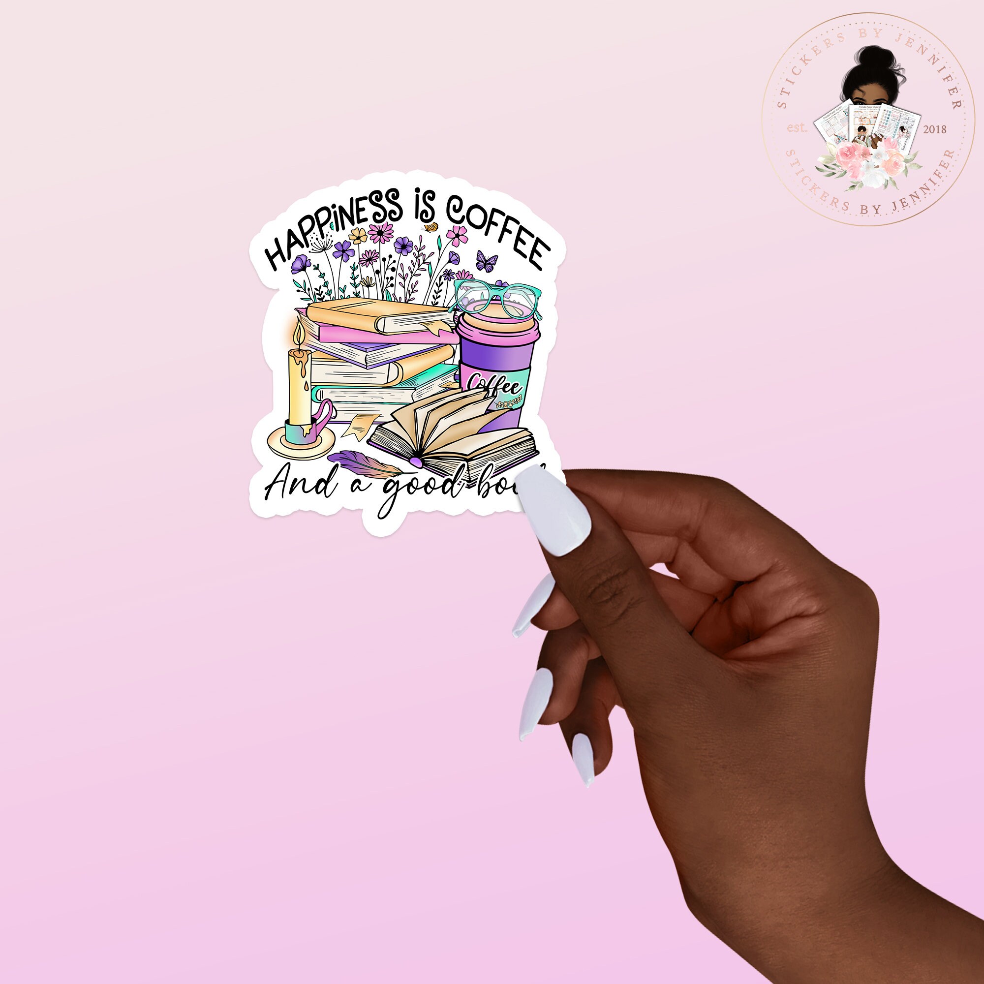 Happiness Coffee And A Good Book Vinyl Sticker