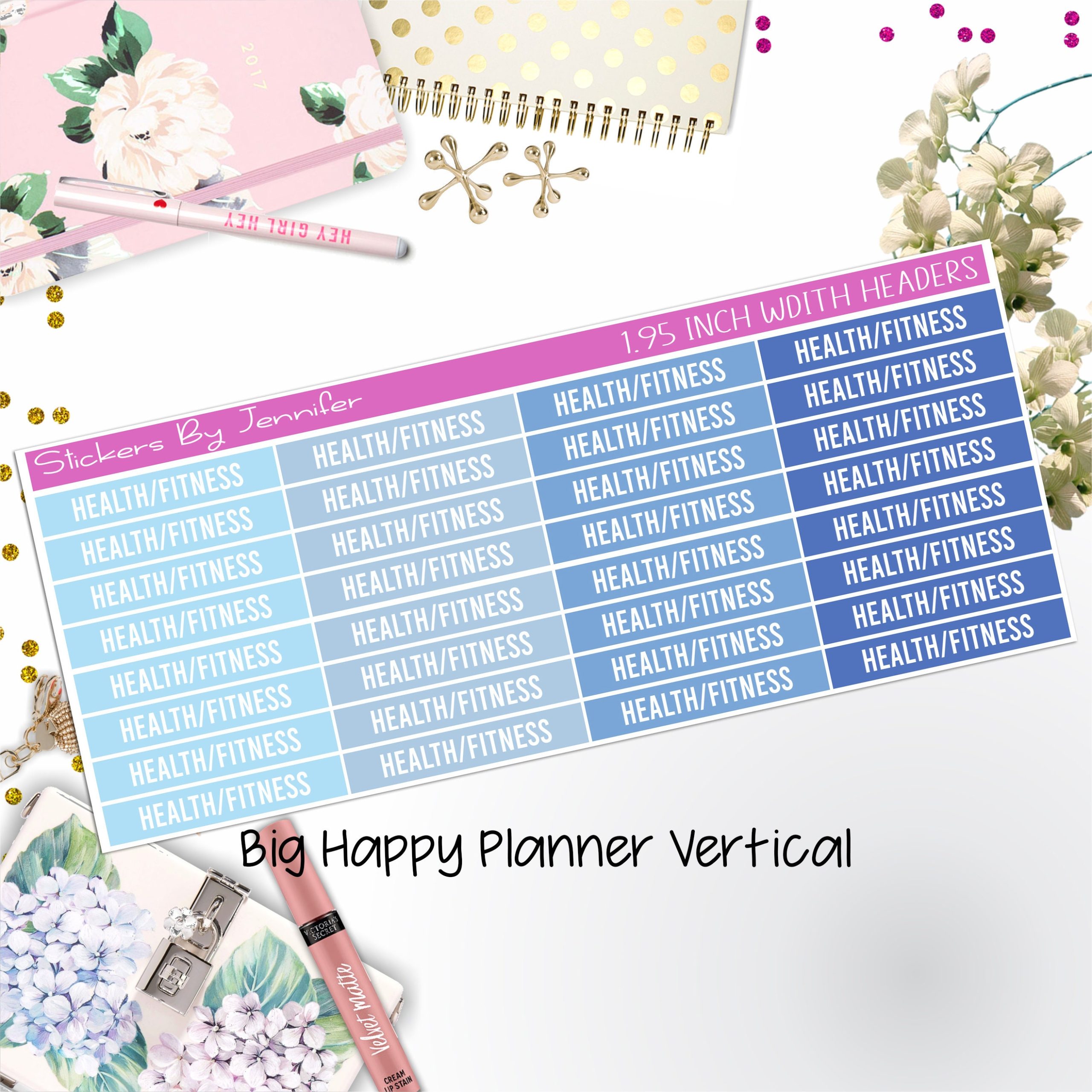 Health/Fitness Headers 1.95 inch Width 729 for Big Happy Planner Vertical Planner Stickers