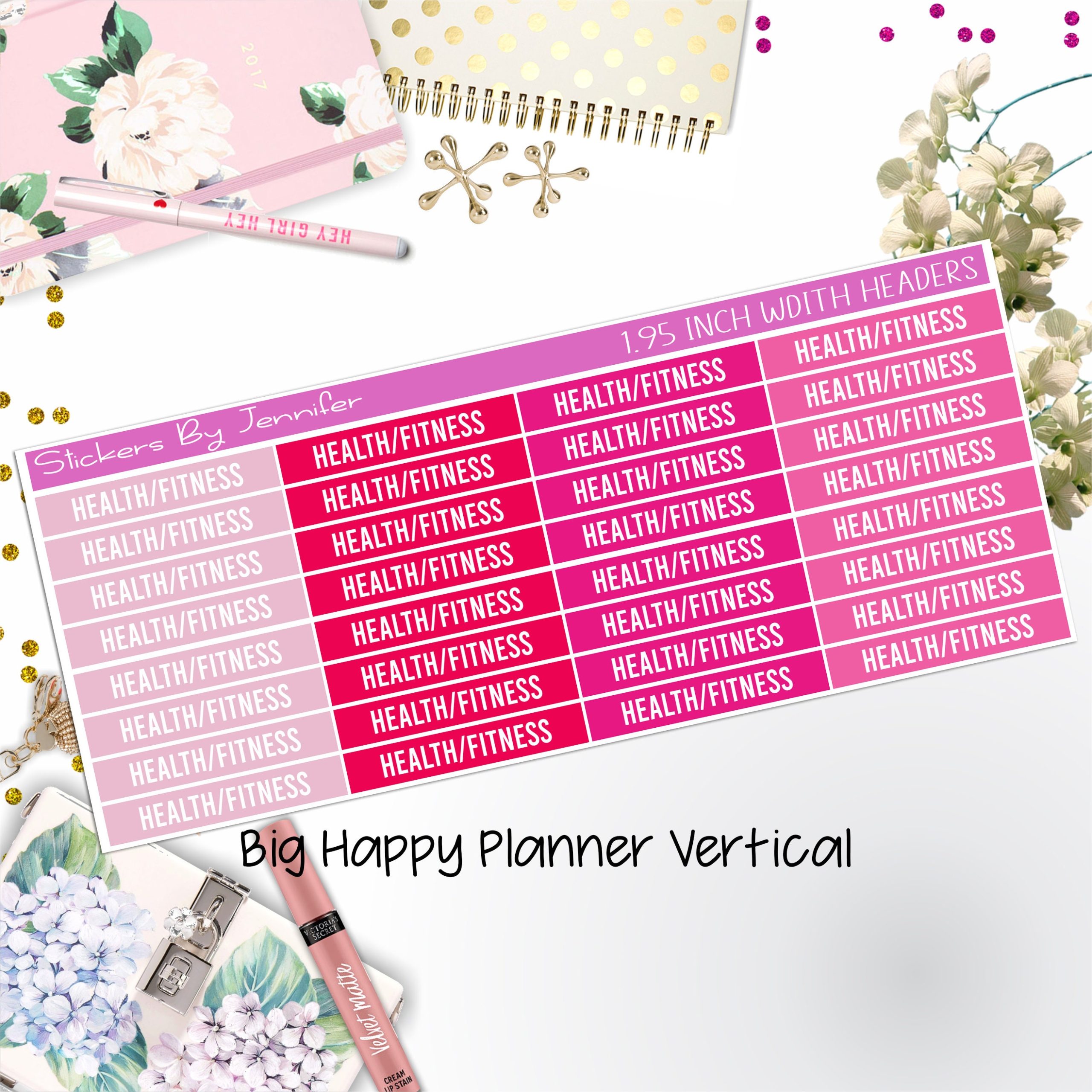 Health/Fitness Headers 1.95 inch Width 744 for Big Happy Planner Vertical Planner Stickers