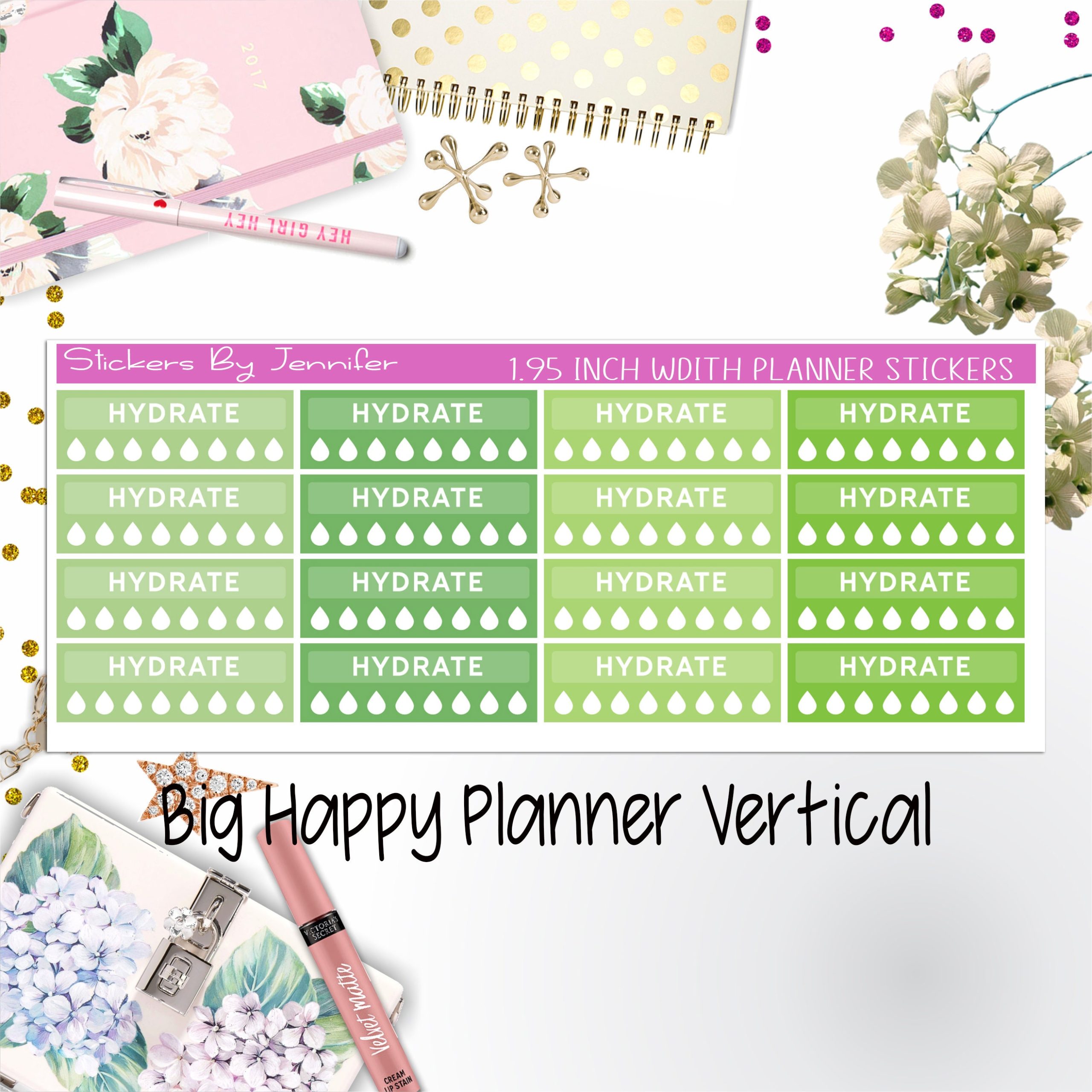 Hydrate Labels 1.95 inch Width Quarter Boxes 279 for Big Happy Planner Vertical Planner Stickers