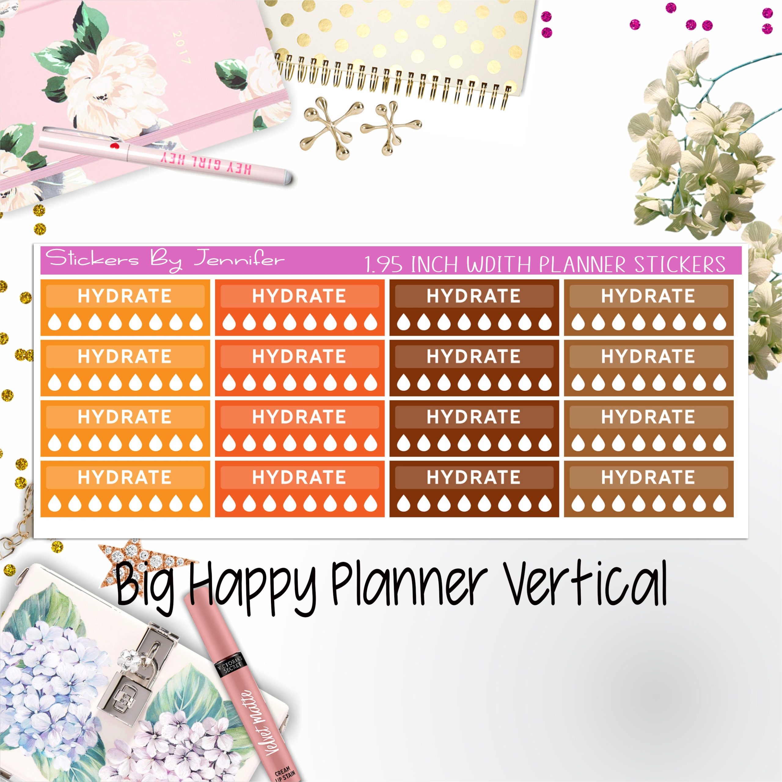 Hydrate Labels 1.95 inch Width Quarter Boxes 296 for Big Happy Planner Vertical Planner Stickers