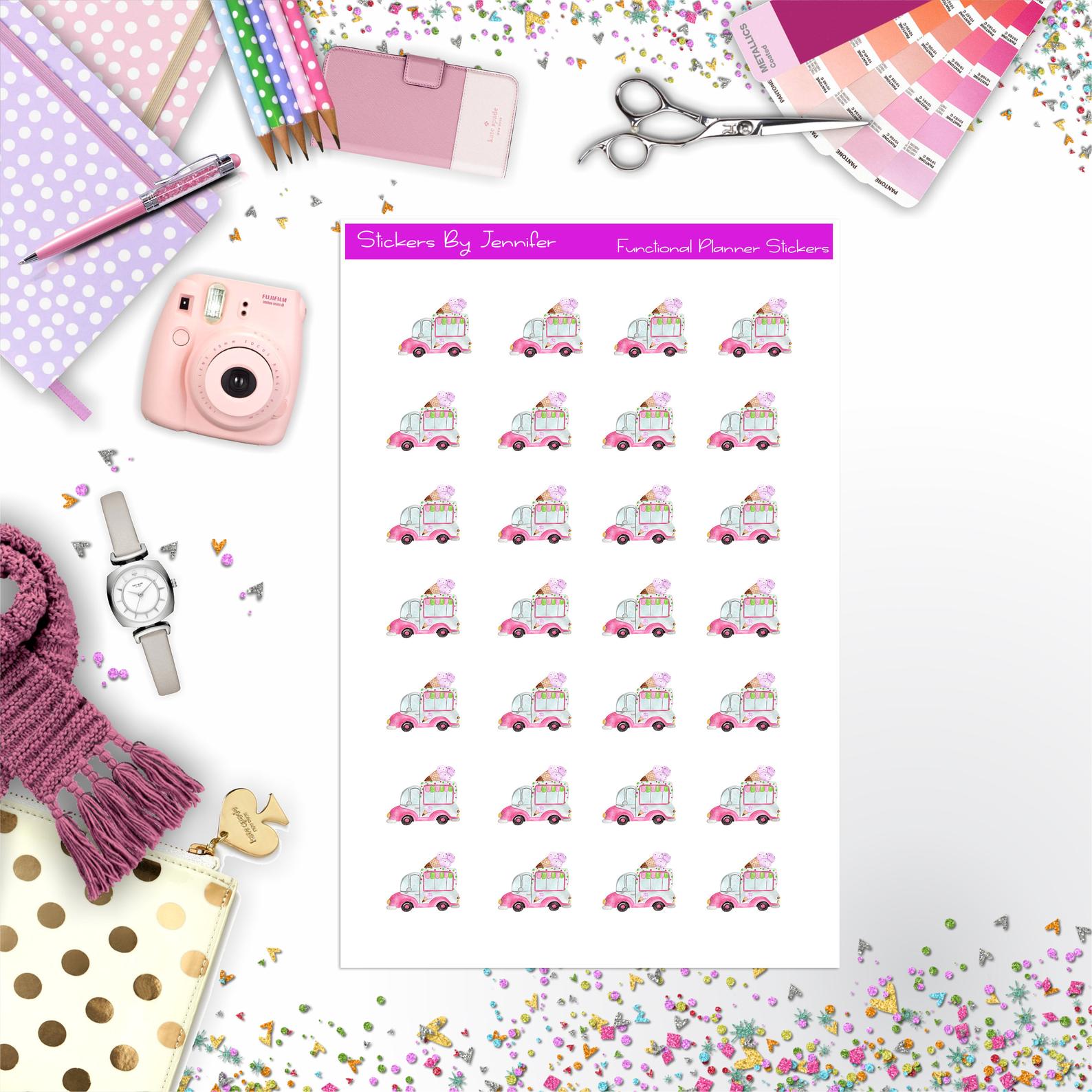 Ice Cream Truck Planner Stickers, Bullet Journal Stickers, Functional Planner Stickers, Stationary Stickers
