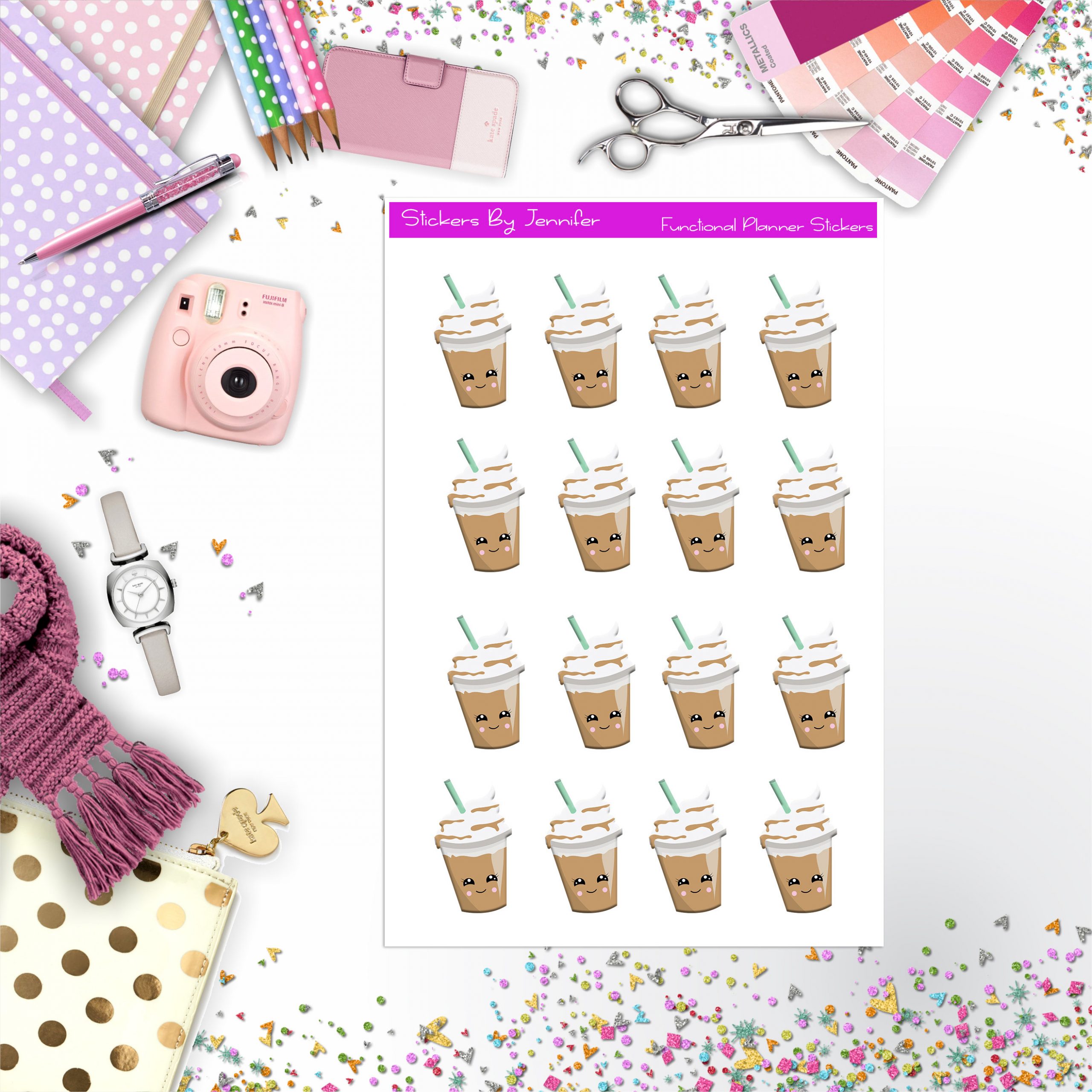 Iced Latte Stickers, Planner Stickers, Journal Stickers, Functional Planner Stickers, Stationary Stickers