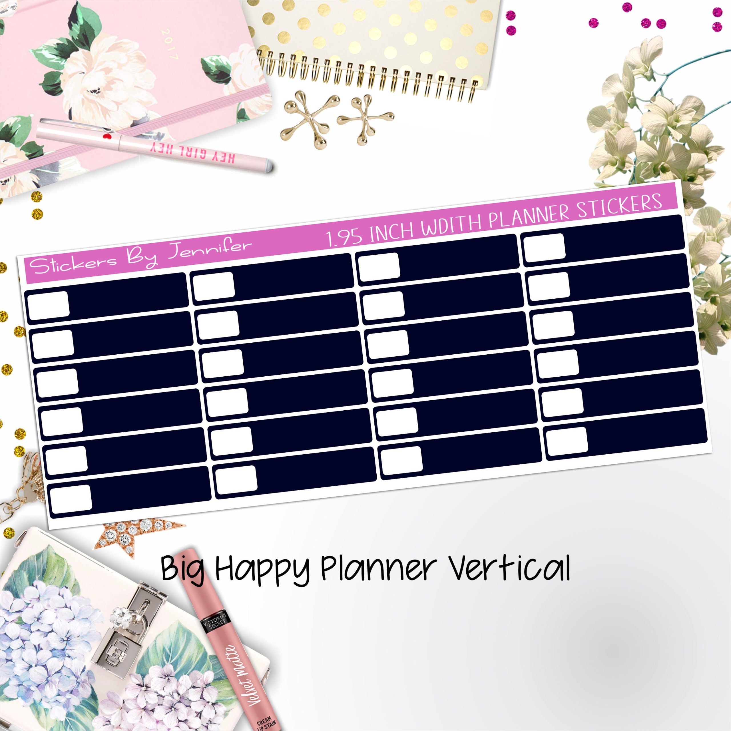 Labels 1.95 inch Width Quarter Boxes 507 for Big Happy Planner Vertical Planner Stickers