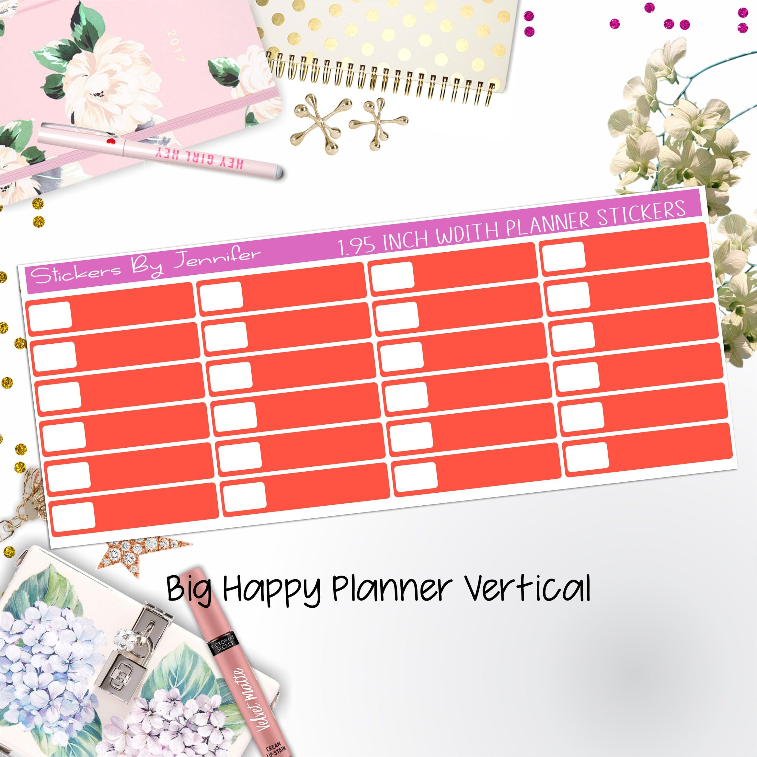 Labels 1.95 inch Width Quarter Boxes 584 for Big Happy Planner Vertical Planner Stickers
