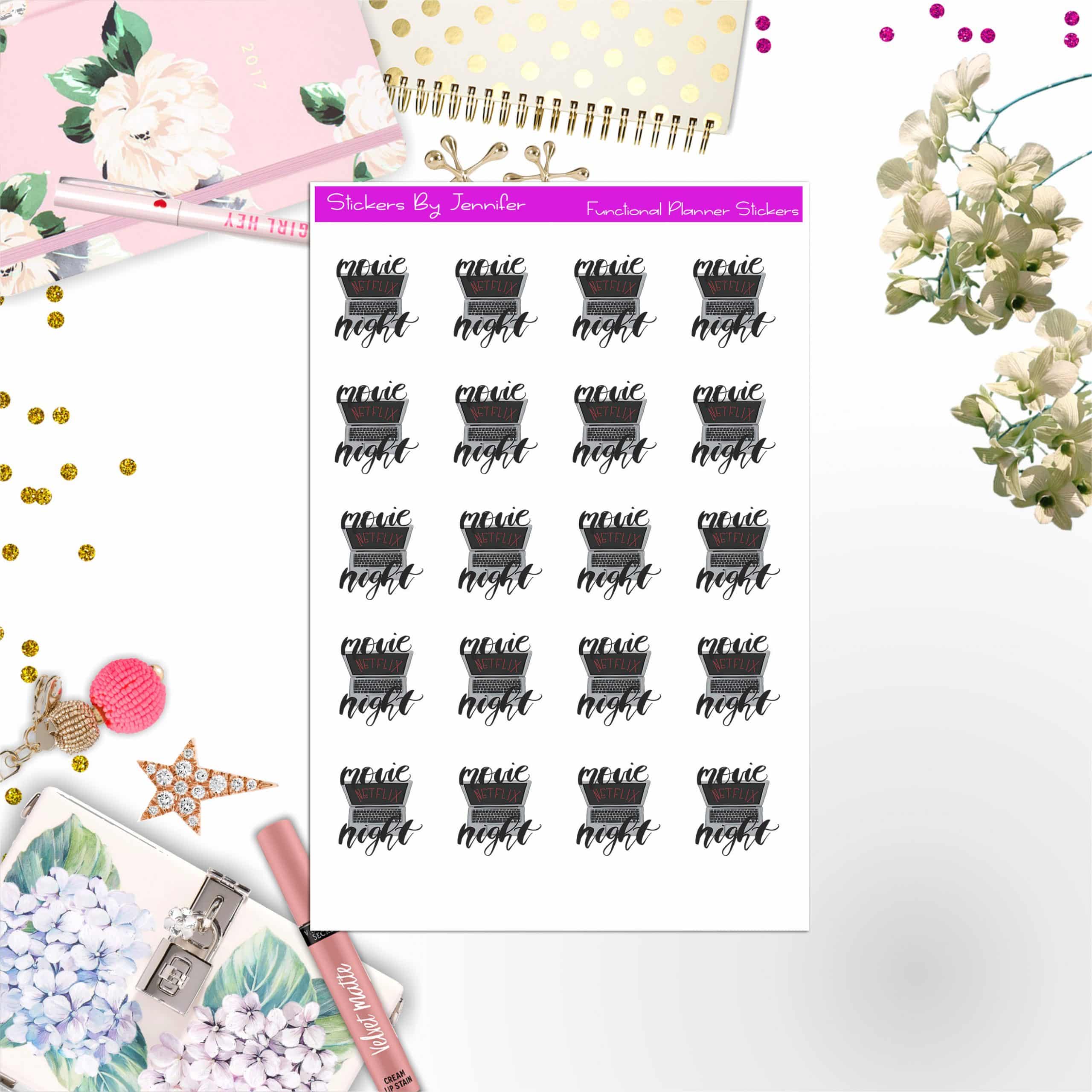 Movie Night Icon Stickers, Bullet Journal Stickers, Functional Planner Stickers, Stationary Stickers