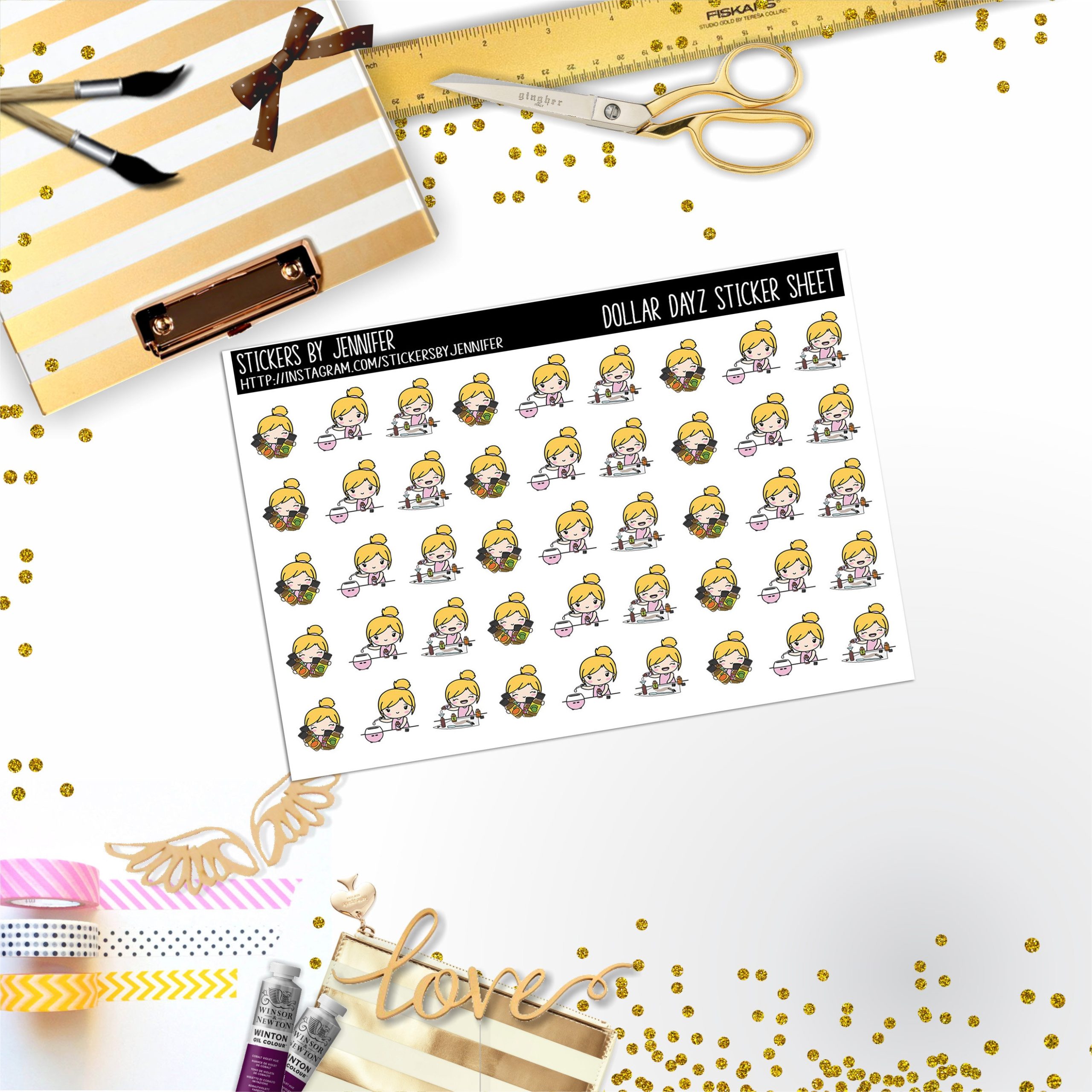Oils Character Girl Mini DD040, Planner Stickers, Bullet Journal, Functional Planner Stickers, Stationary Stickers