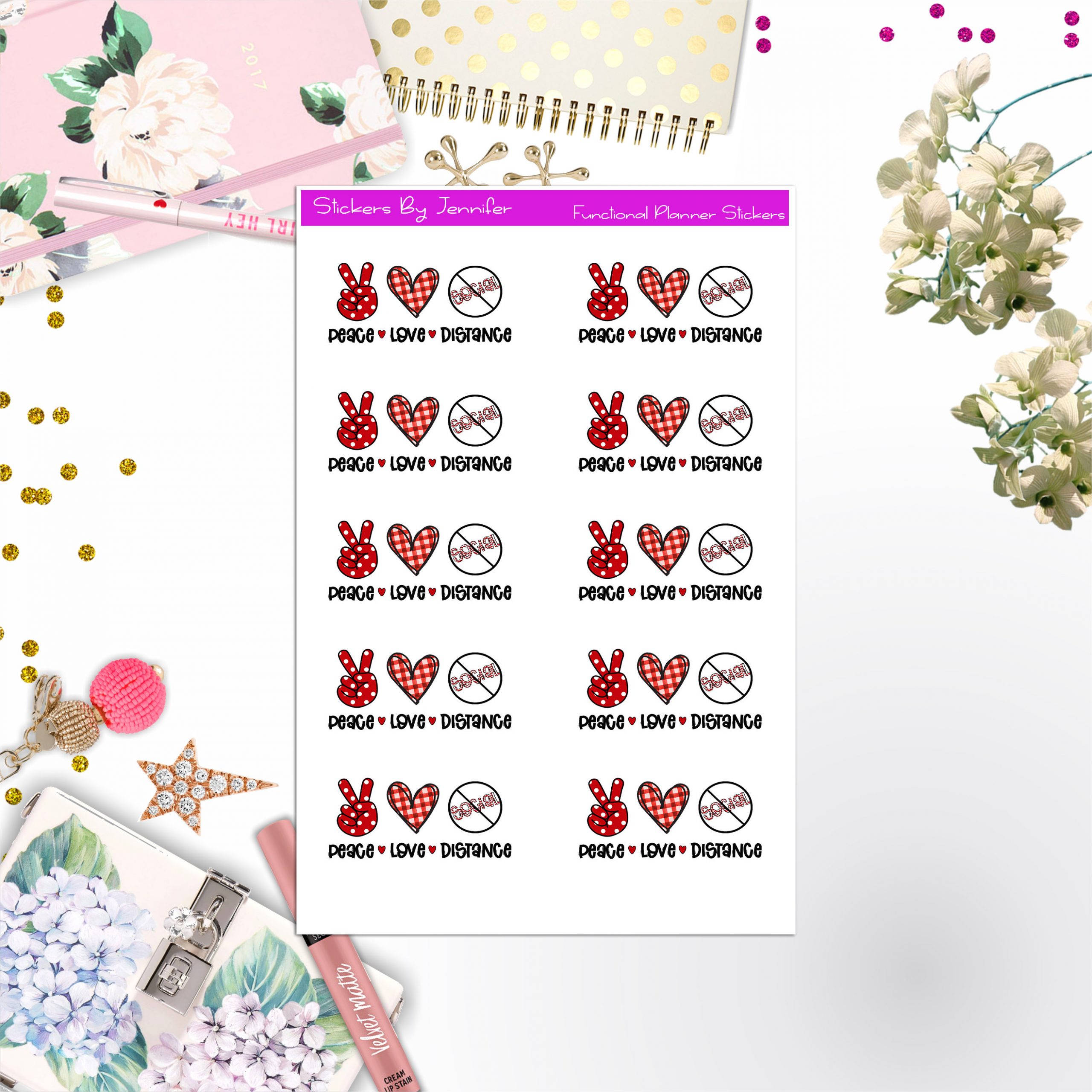 BONUS: Freebies are included in every order! The freebies are a random freebie design on a 4×3 freebie sticker sheet, printed on matte sticker paper. You’ll get between 1-2 sheets it depends on what I have in stock.