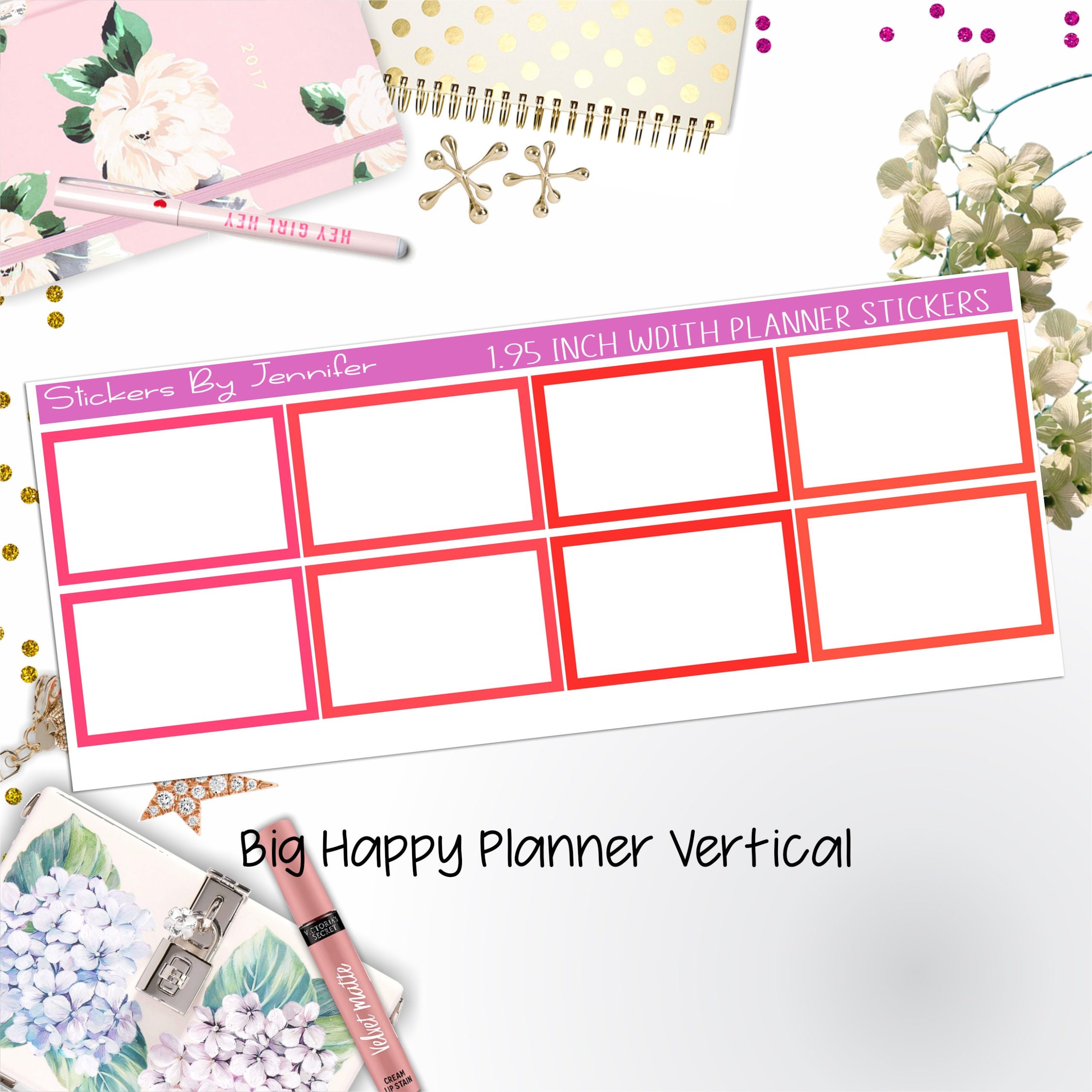 Rectangle 1.95 inch Width Half Boxes 446 for Big Happy Planner Vertical Planner Stickers