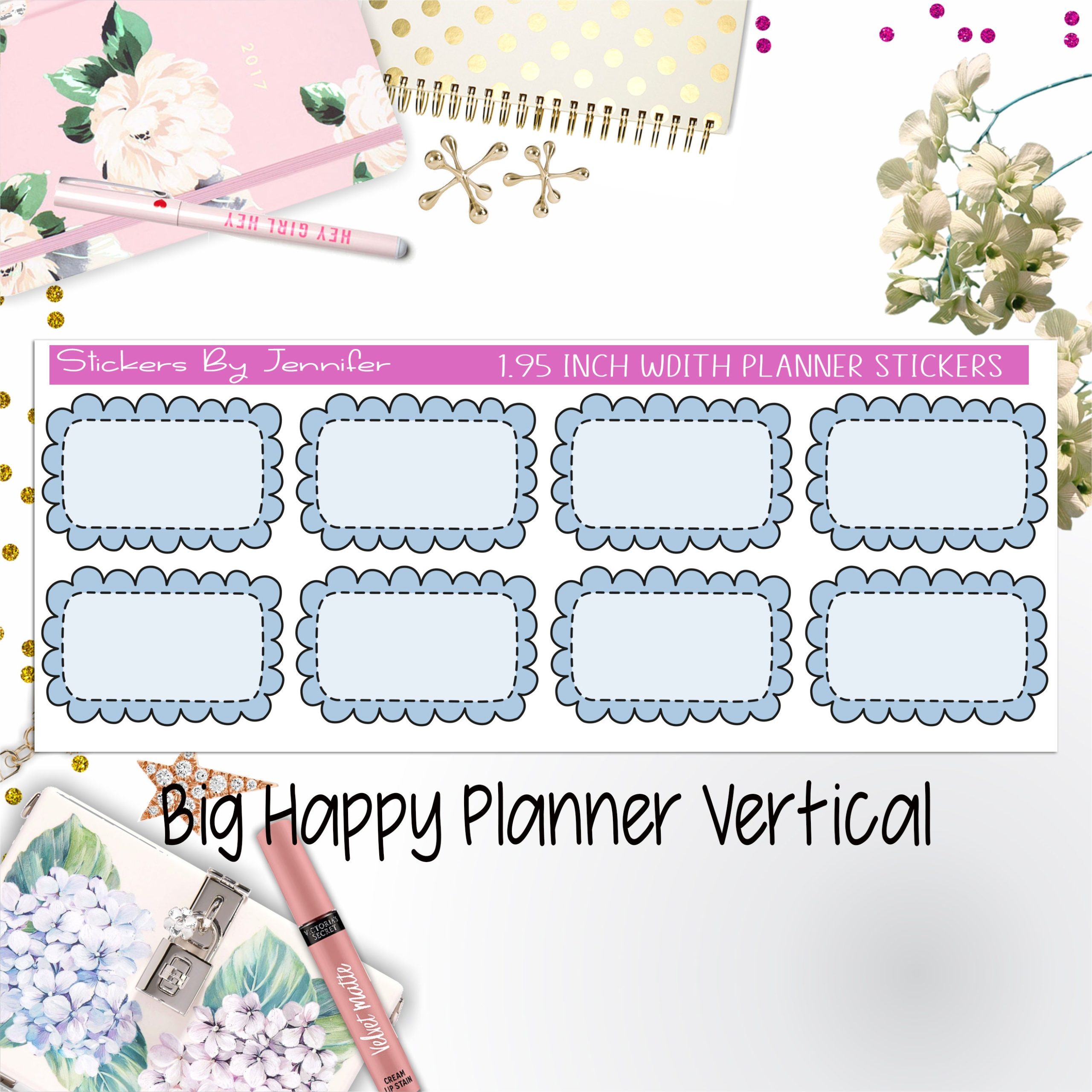 Scalloped Labels 1.95 inch Width Half Boxes 189 for Big Happy Planner Vertical Planner Stickers
