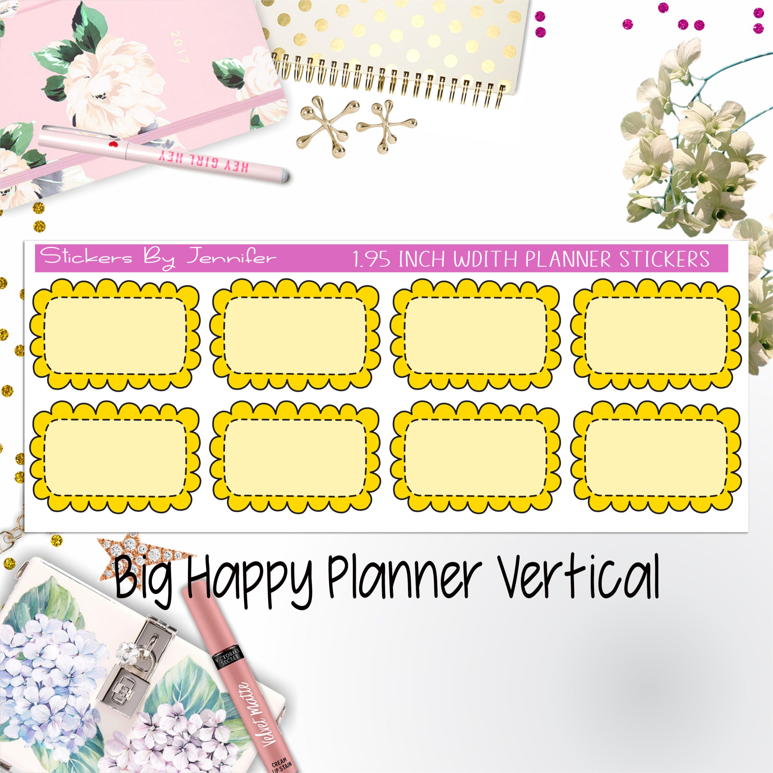 Scalloped Labels 1.95 inch Width Half Boxes 217 for Big Happy Planner Vertical Planner Stickers