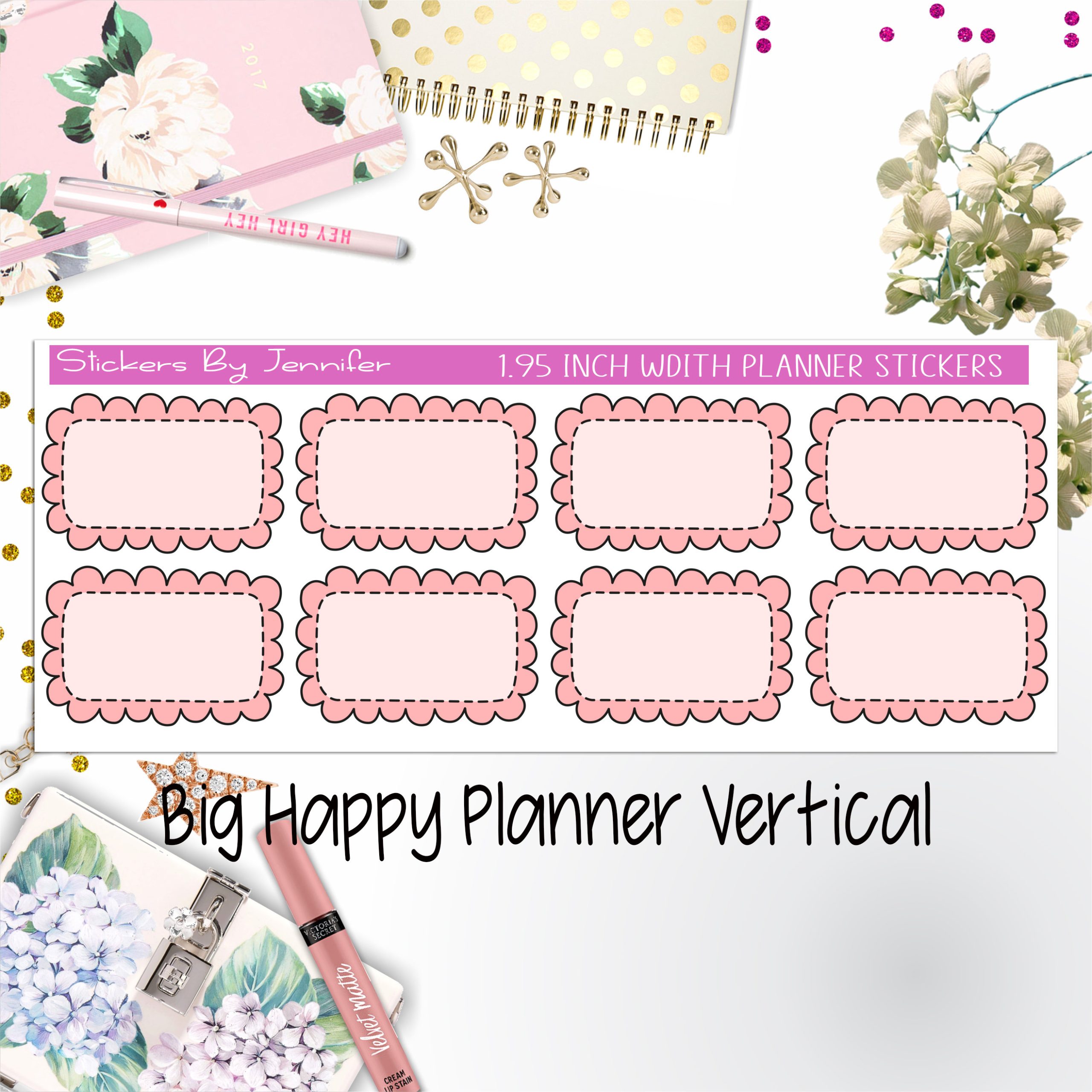 Scalloped Labels 1.95 inch Width Half Boxes 255 for Big Happy Planner Vertical Planner Stickers