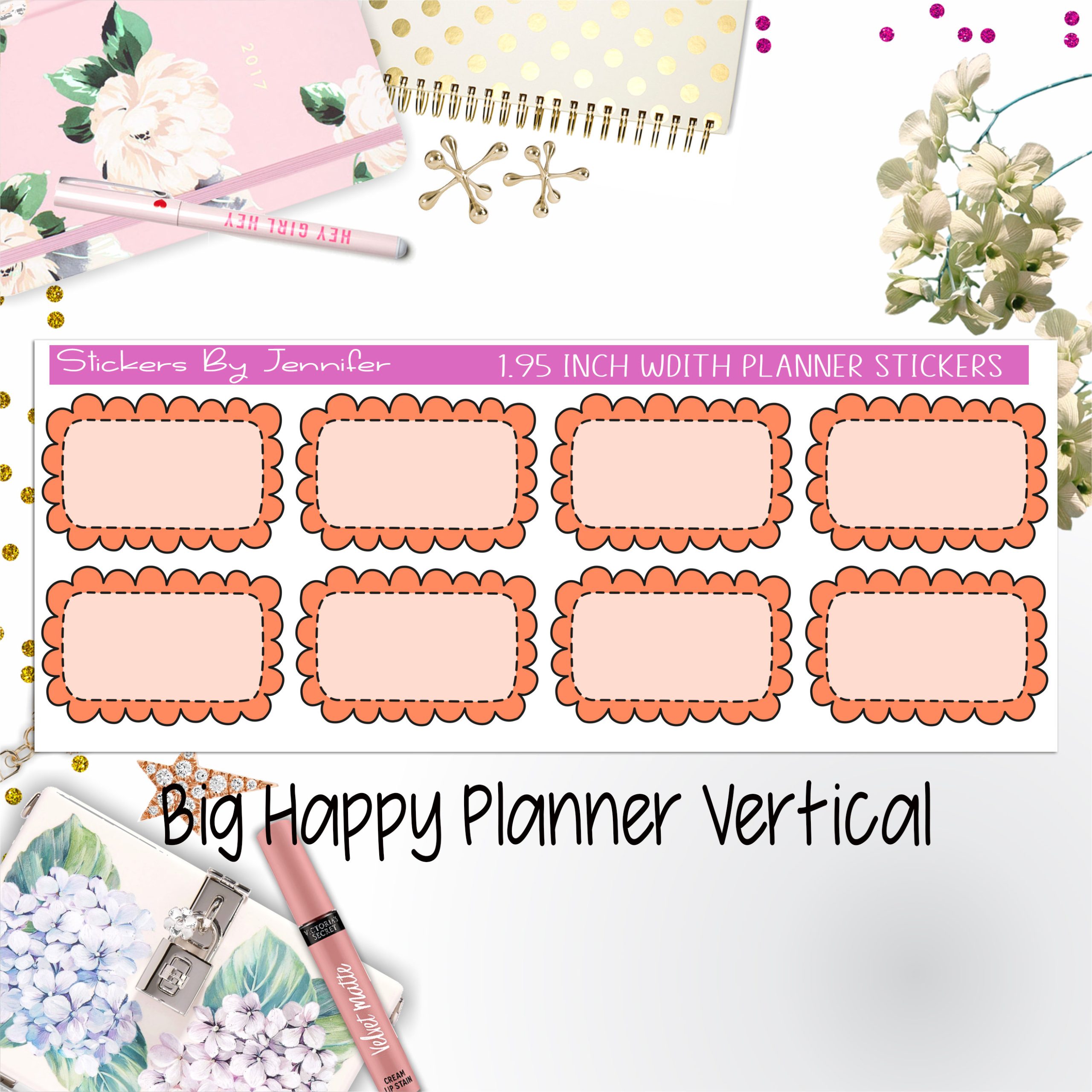 Scalloped Labels 1.95 inch Width Half Boxes 260 for Big Happy Planner Vertical Planner Stickers