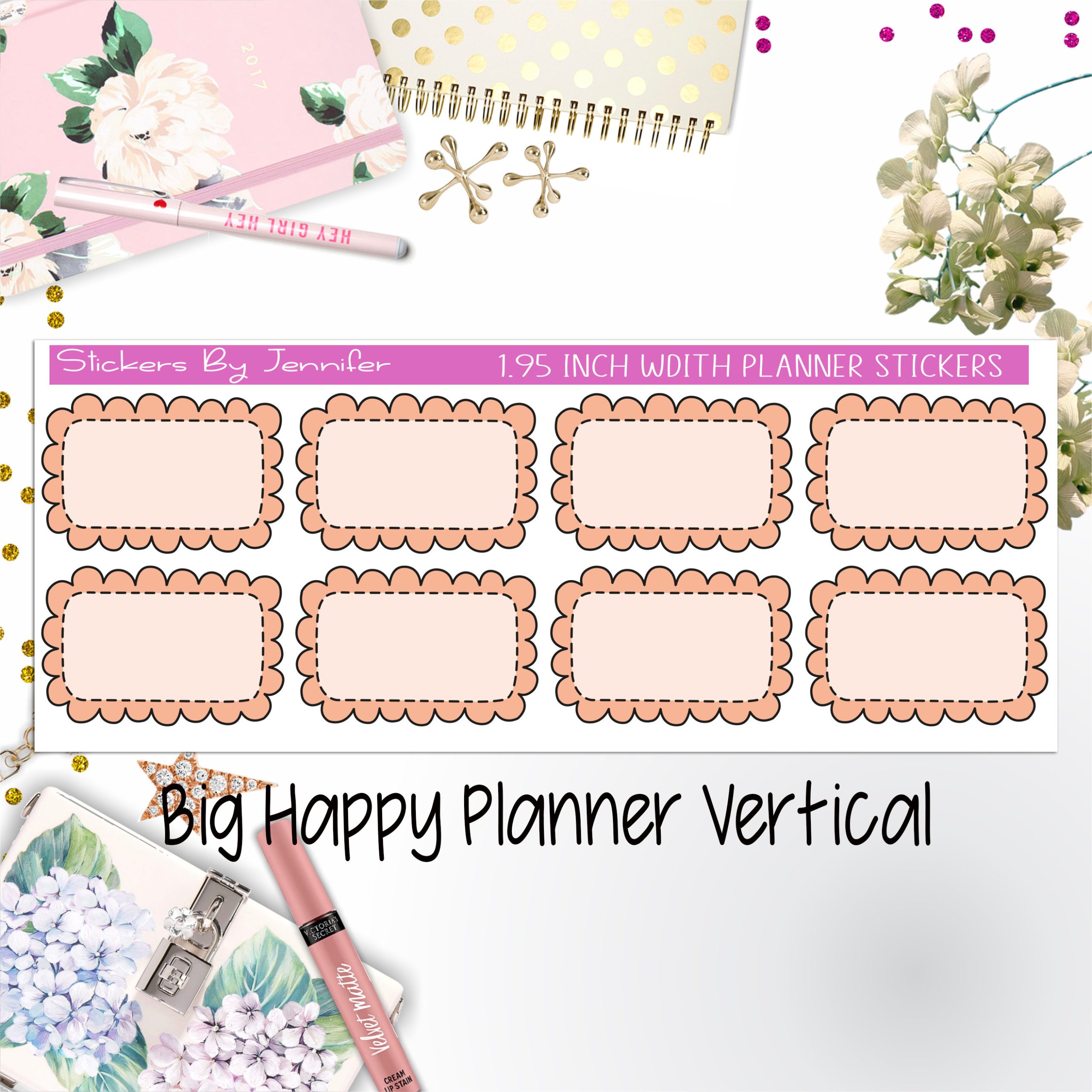 Scalloped Labels 1.95 inch Width Half Boxes 263 for Big Happy Planner Vertical Planner Stickers