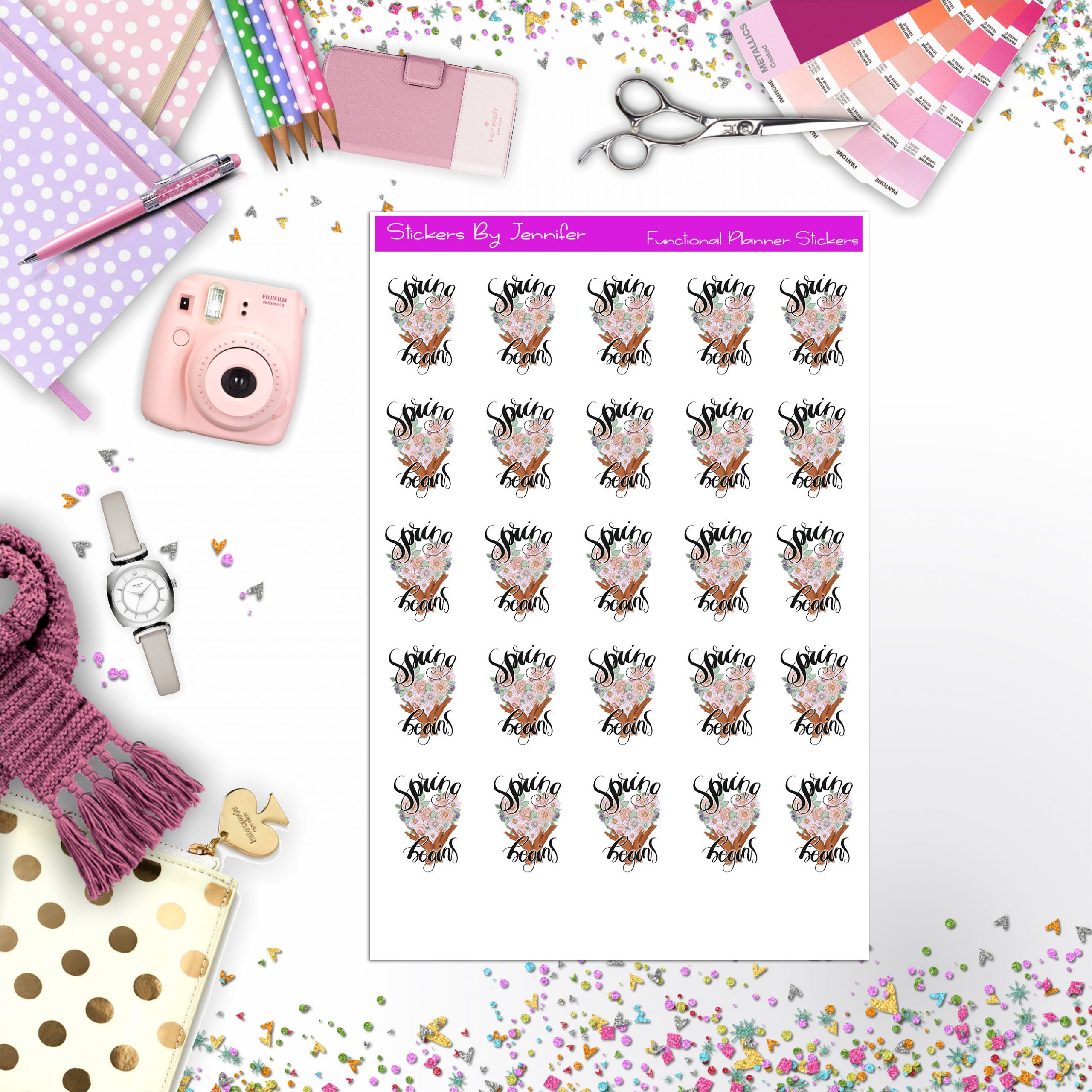 Spring Begins Icon Planner Stickers, Bullet Journal Stickers, Functional Planner Stickers, Stationary Stickers
