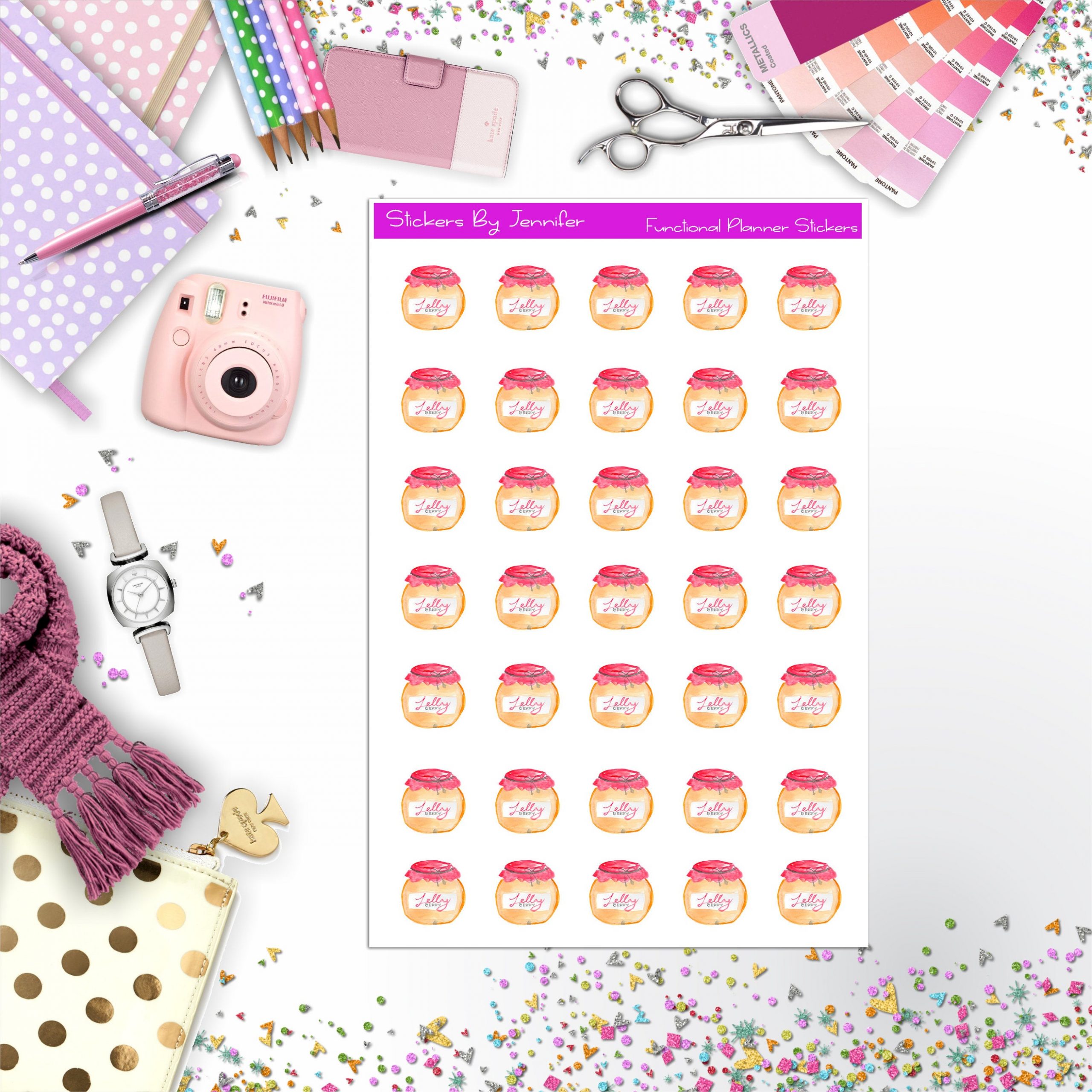 Strawberry Jelly Stickers, Planner Stickers, Journal Stickers, Functional Planner Stickers, Stationary Stickers