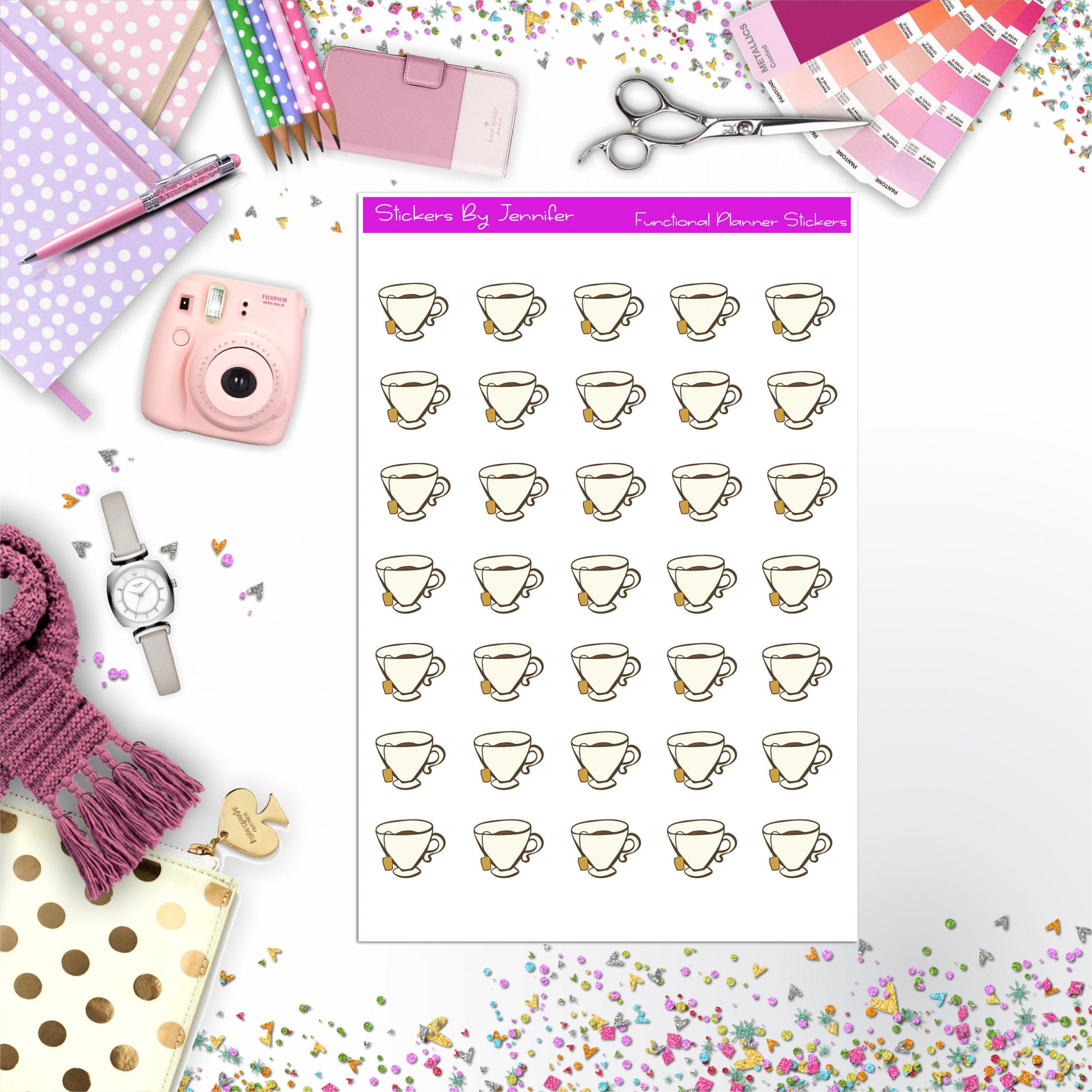 Tea Cup Stickers, Planner Stickers, Journal Stickers, Functional Planner Stickers, Stationary Stickers