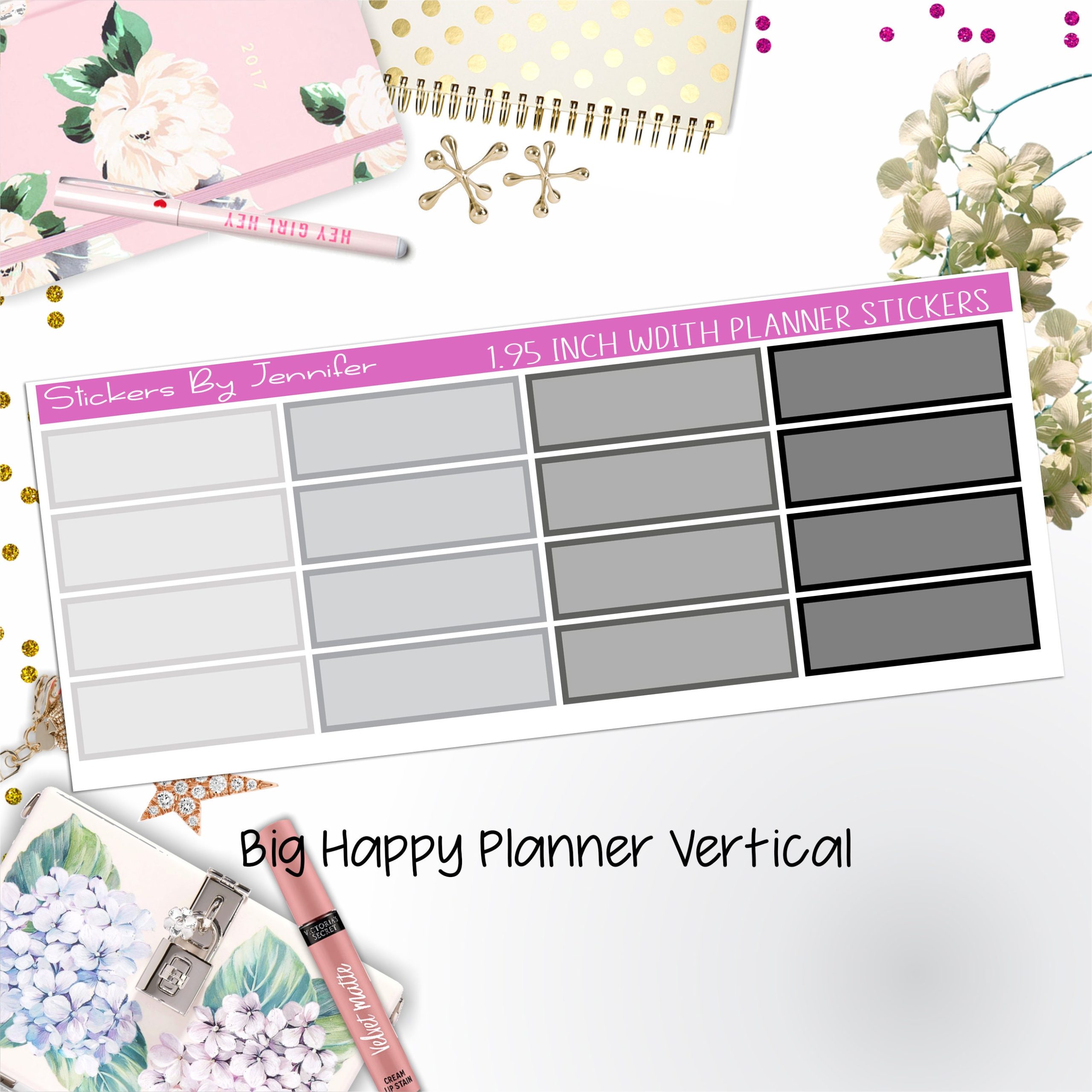 Tinted Rectangle 1.95 inch Width Quarter Boxes 425 for Big Happy Planner Vertical Planner Stickers