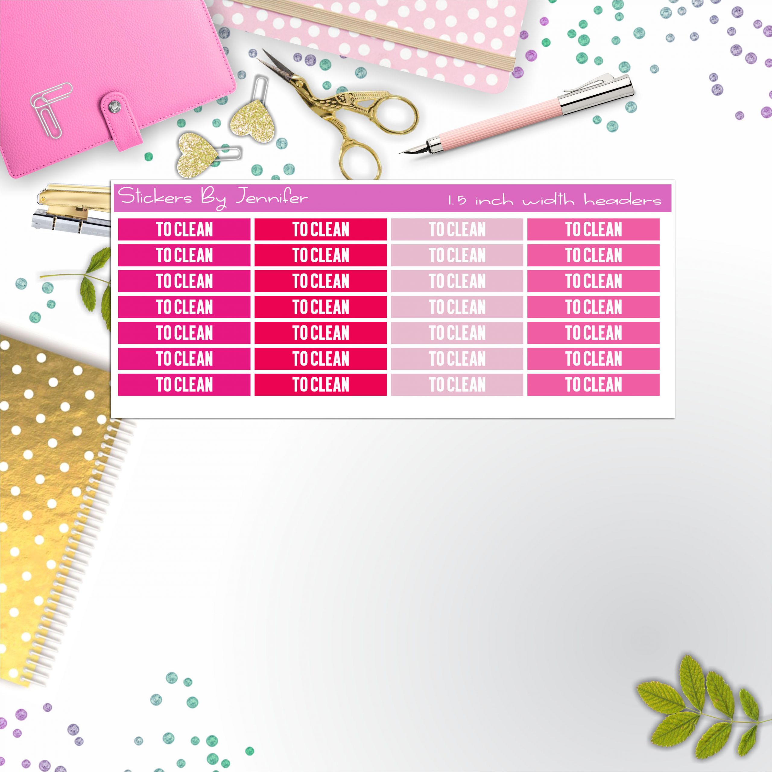 To Clean 019 Planner Headers, Planner Stickers, Journal Stickers, Functional Planner Stickers, Stationary Stickers