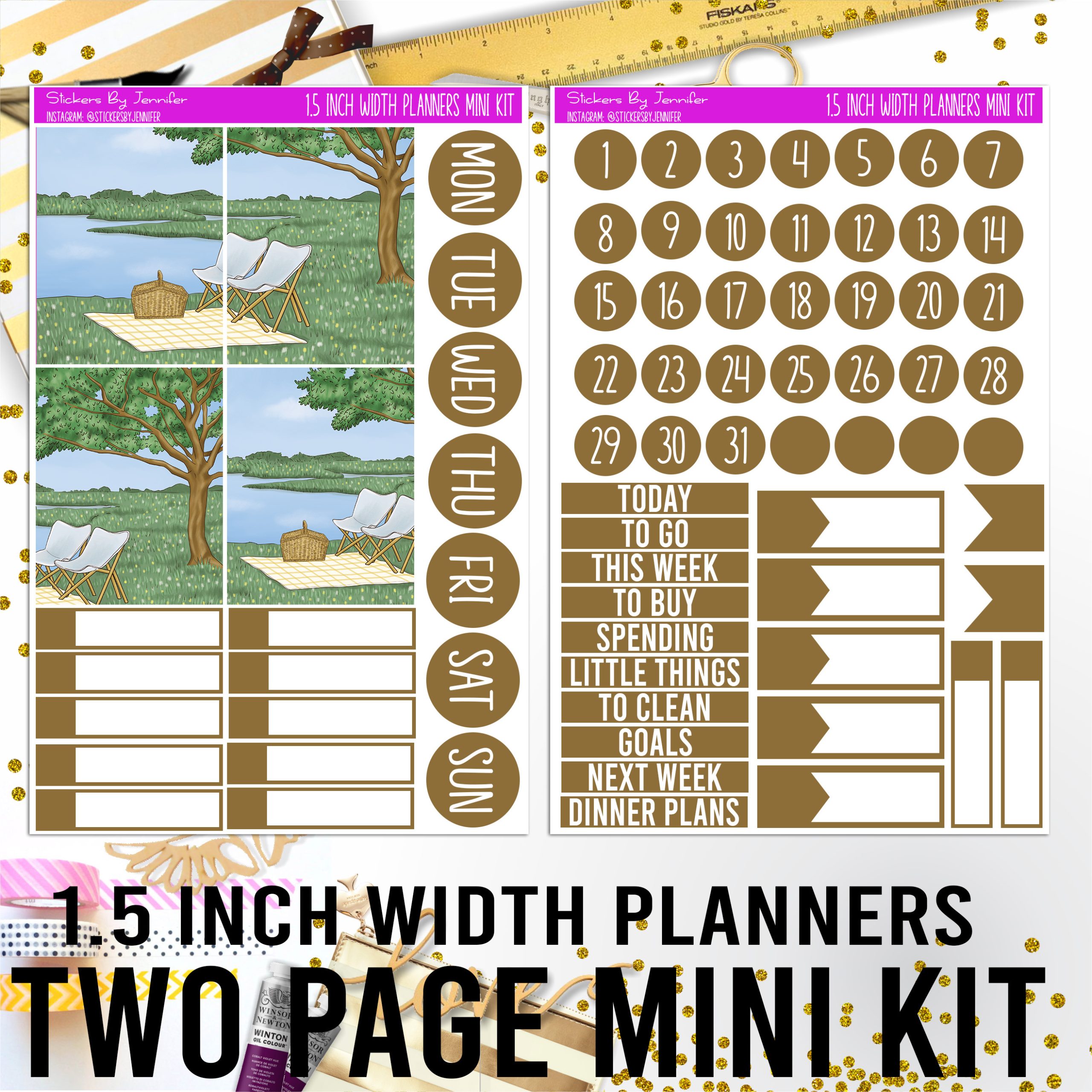 Two Page 1.5 Inch Width Mini Kit 002 Planner Stickers, Bullet Journal Stickers, Functional Planner Stickers, Stationary Stickers