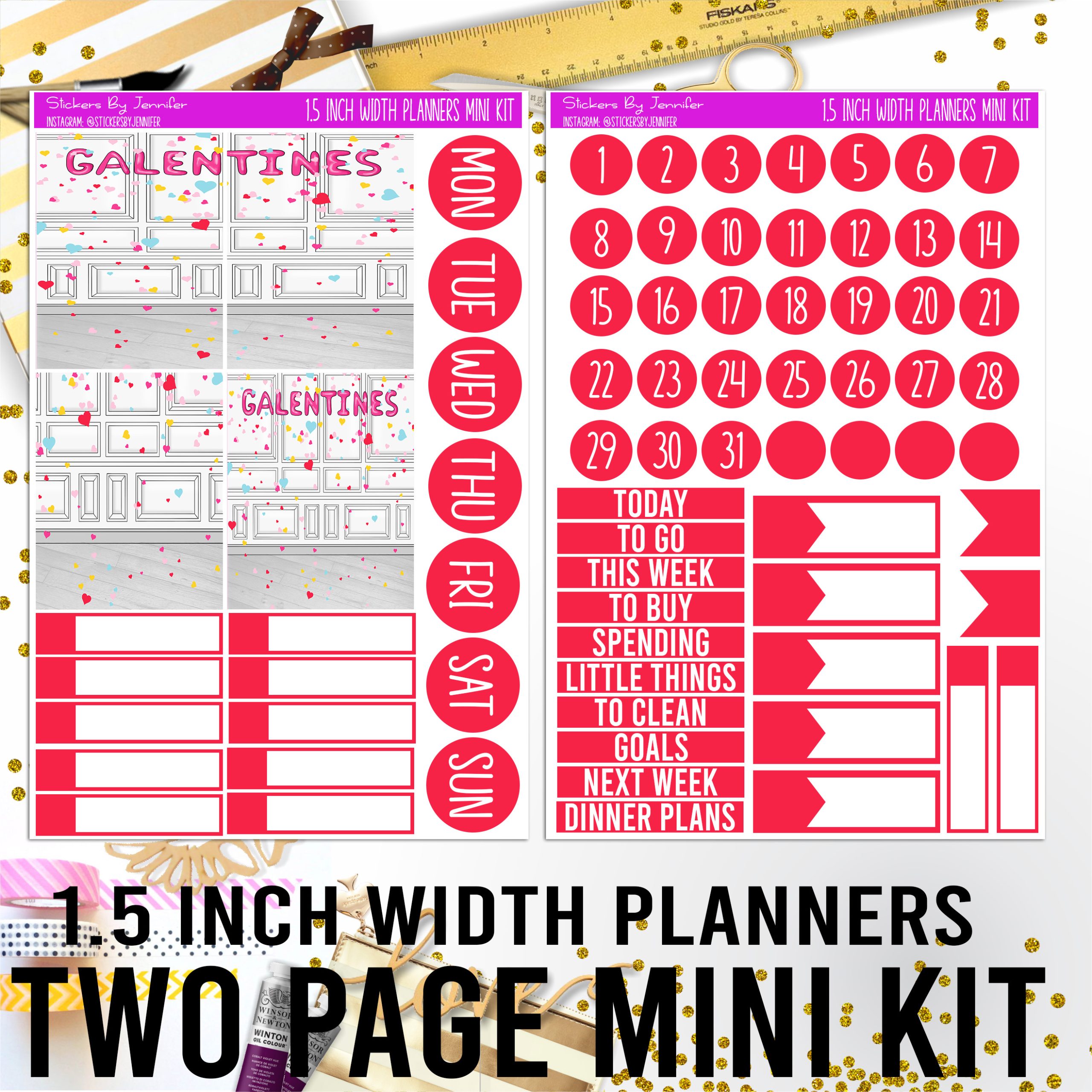 You receive the two sheets in the photo. They are sized to fit 1.5-inch width planners.