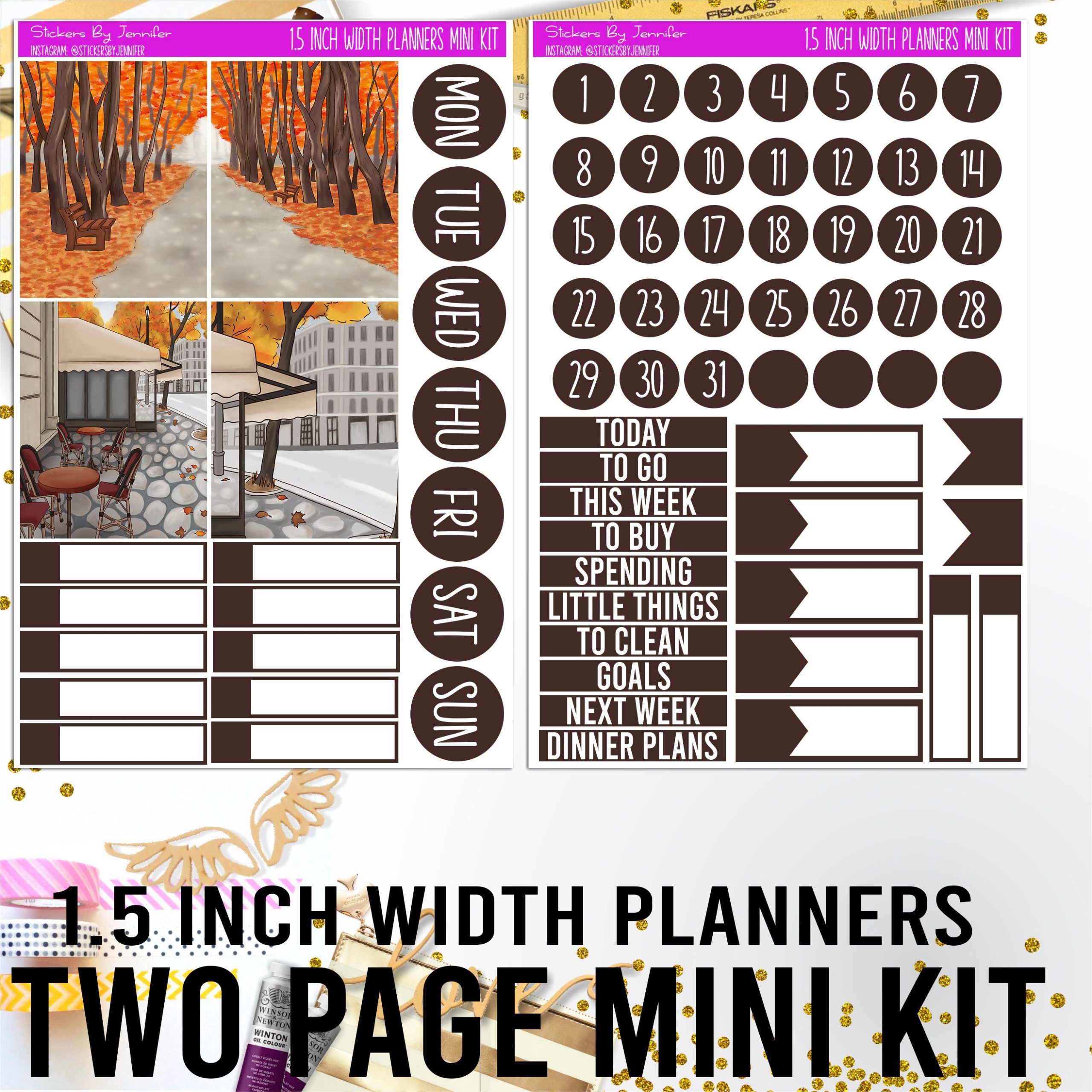 You receive the two sheets in the photo. They are sized to fit 1.5-inch width planners.