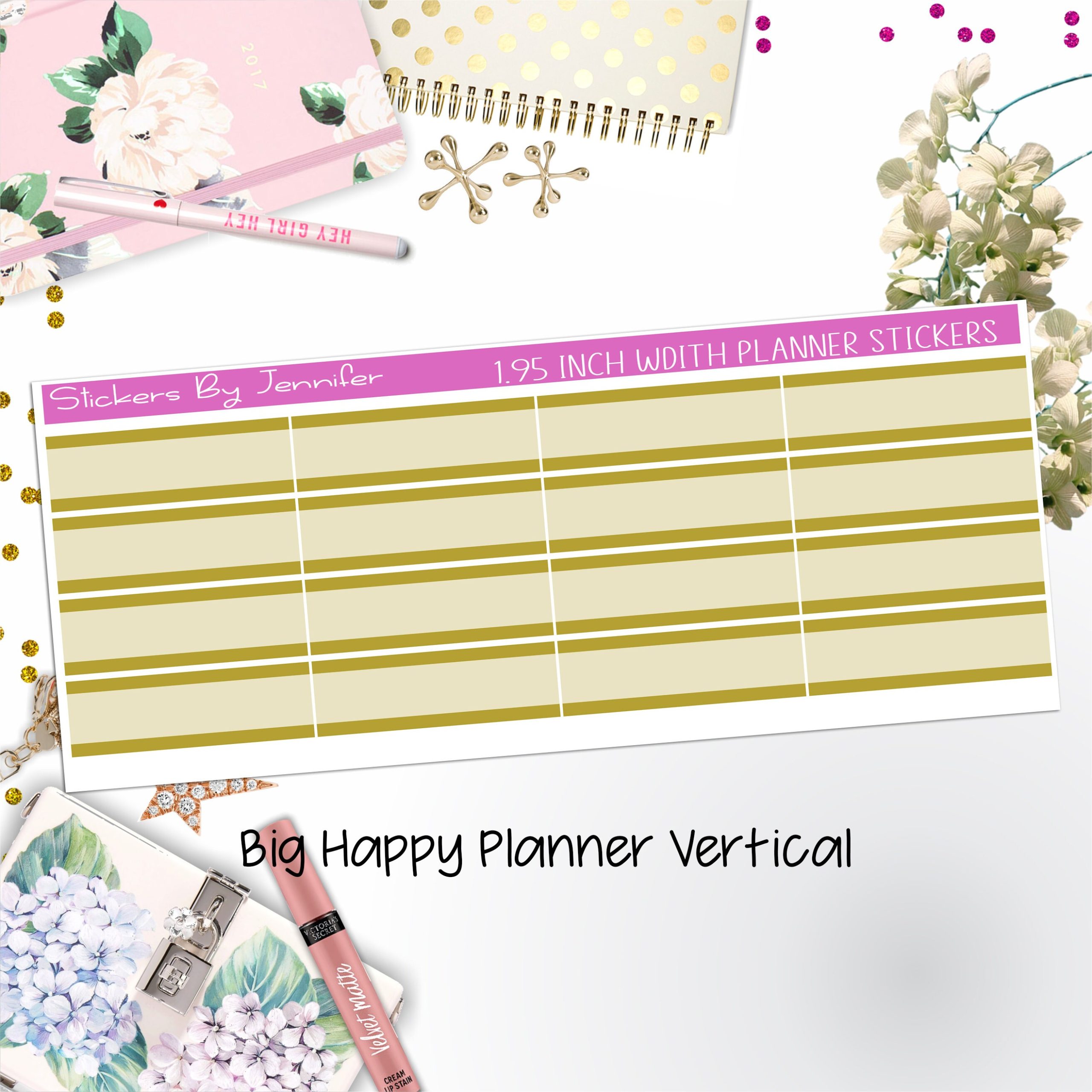 Two-Tone Labels 1.95 inch Width Quarter Boxes 605 for Big Happy Planner Vertical Planner Stickers