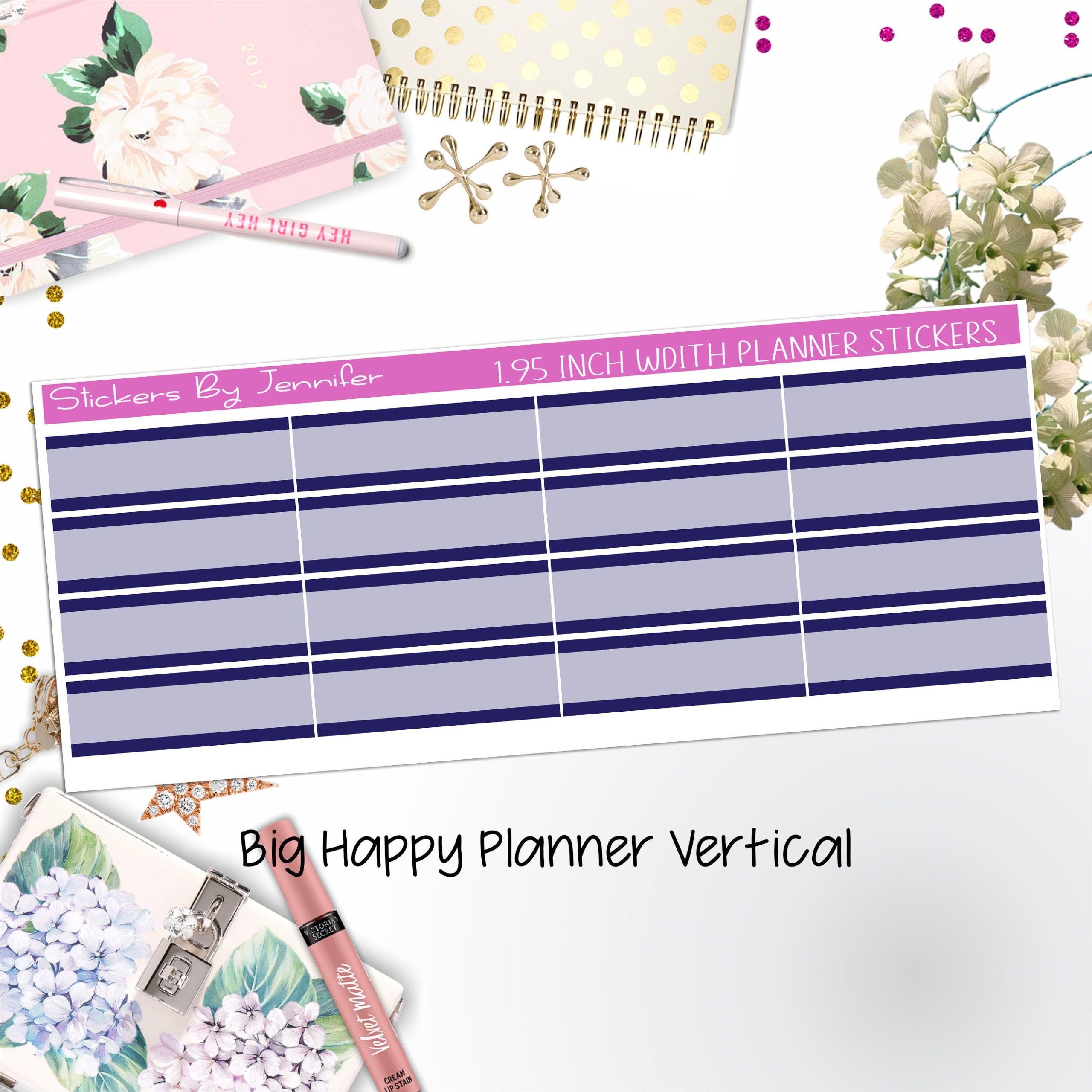 Two-Tone Labels 1.95 inch Width Quarter Boxes 640 for Big Happy Planner Vertical Planner Stickers