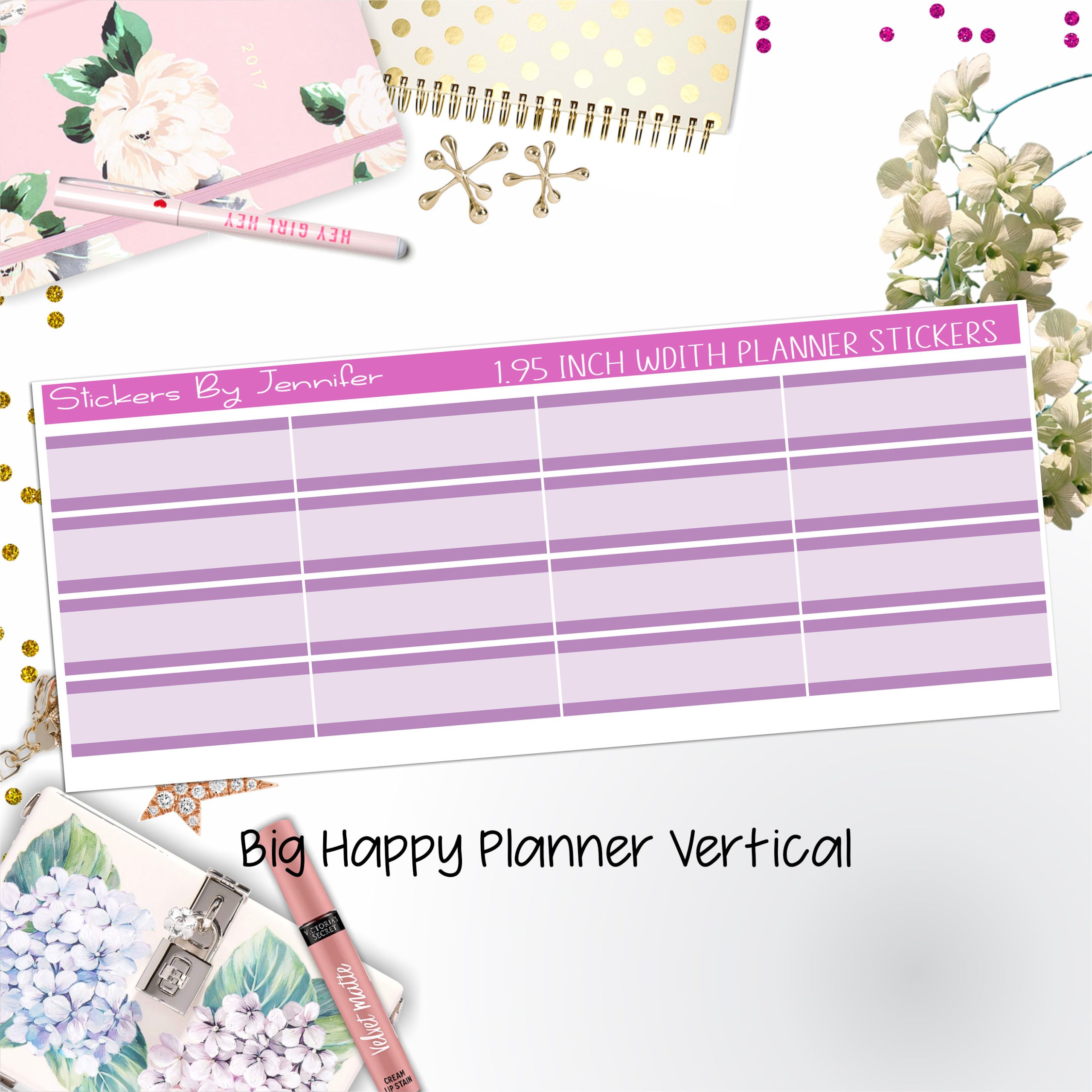 Two-Tone Labels 1.95 inch Width Quarter Boxes 653 for Big Happy Planner Vertical Planner Stickers