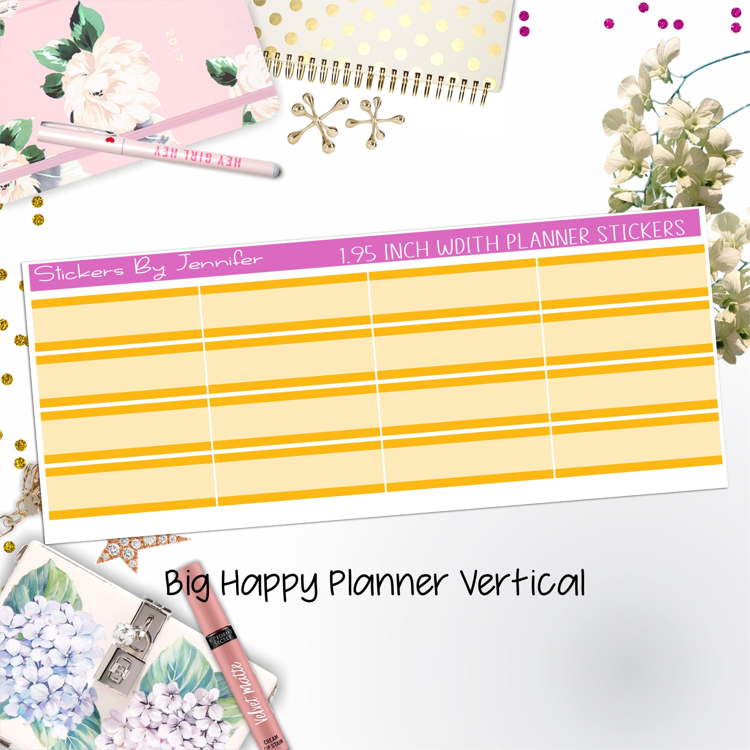 Two-Tone Labels 1.95 inch Width Quarter Boxes 680 for Big Happy Planner Vertical Planner Stickers