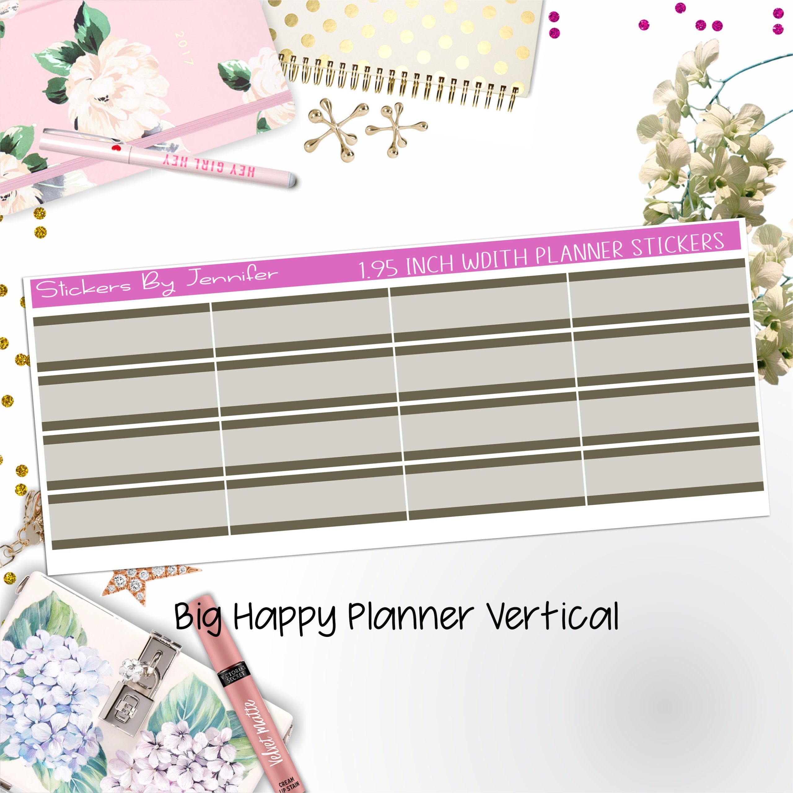 Two-Tone Labels 1.95 inch Width Quarter Boxes 696 for Big Happy Planner Vertical Planner Stickers