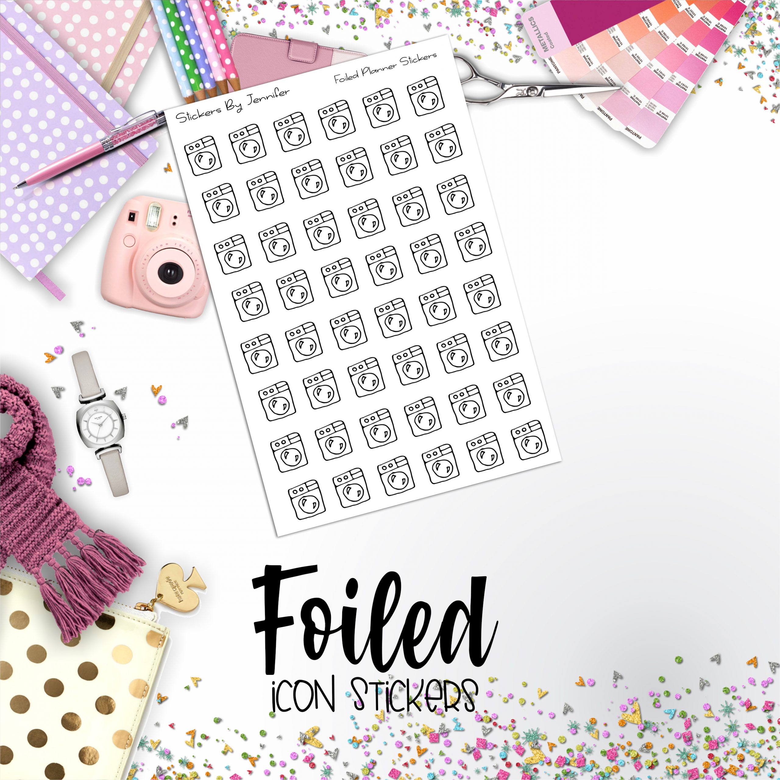 Washing Machine Foiled Functional Sticker Sheet