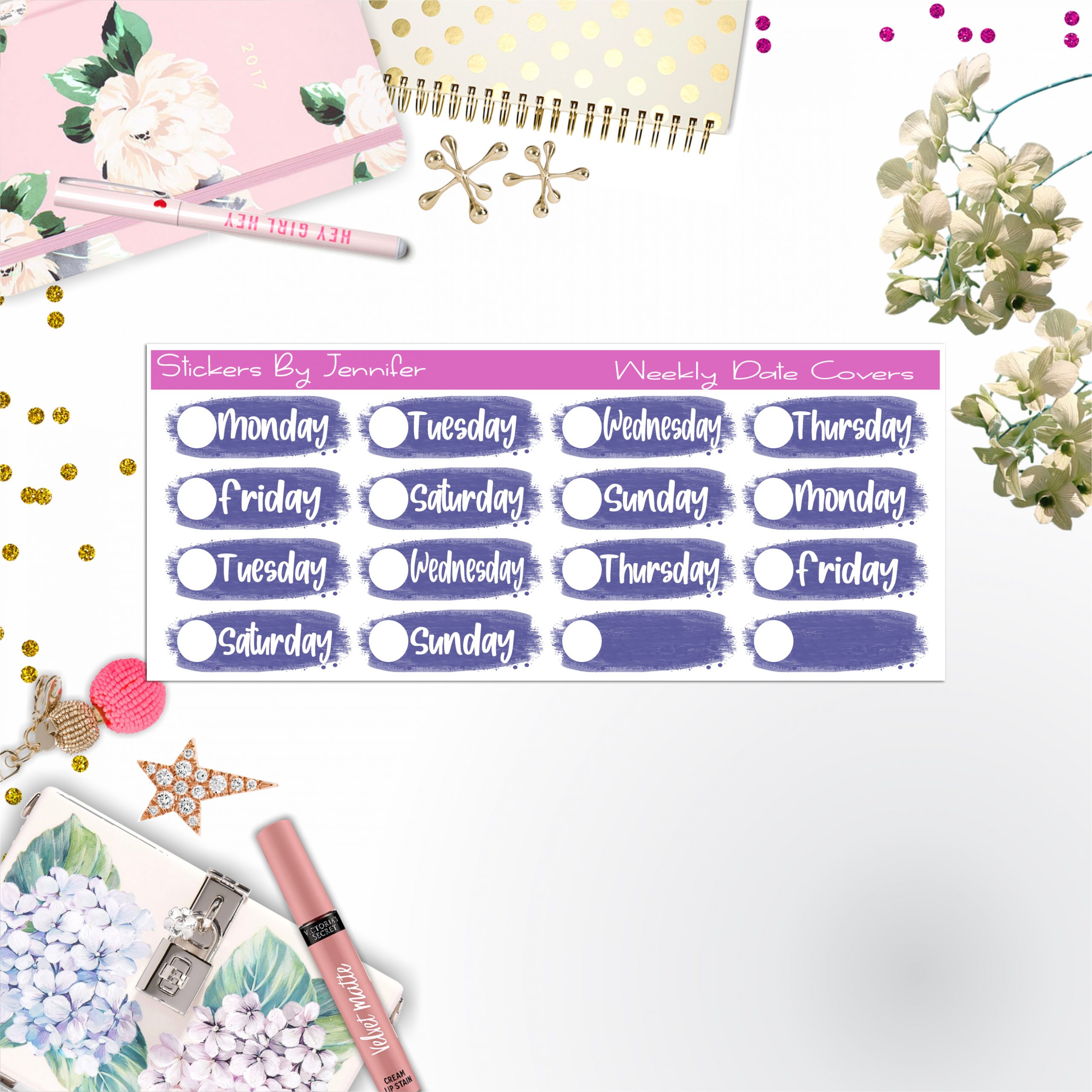 Weekly Date Covers 005 Planner Stickers, Journal Stickers, Functional Planner Stickers, Stationary Stickers
