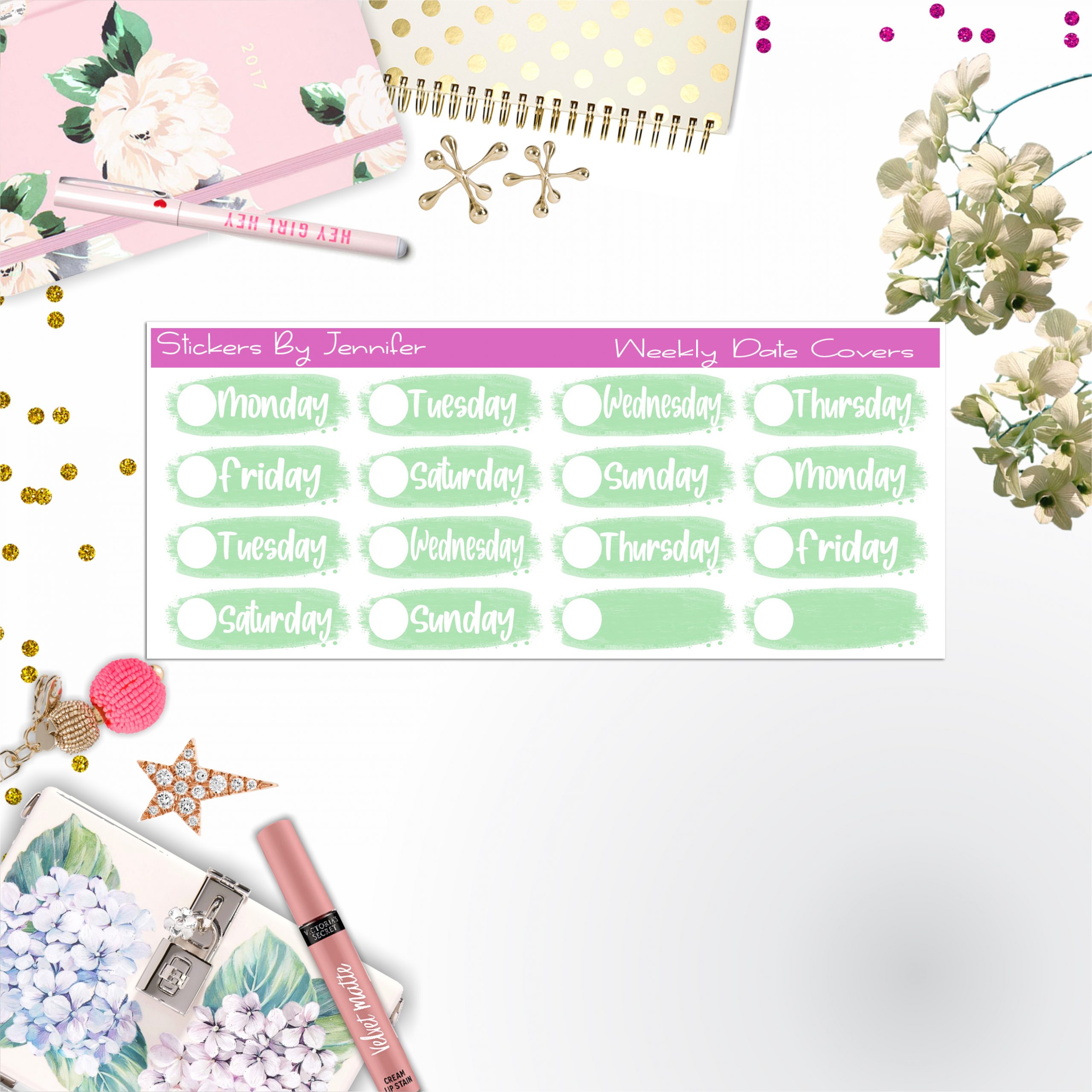 Weekly Date Covers 031 Planner Stickers, Journal Stickers, Functional Planner Stickers, Stationary Stickers