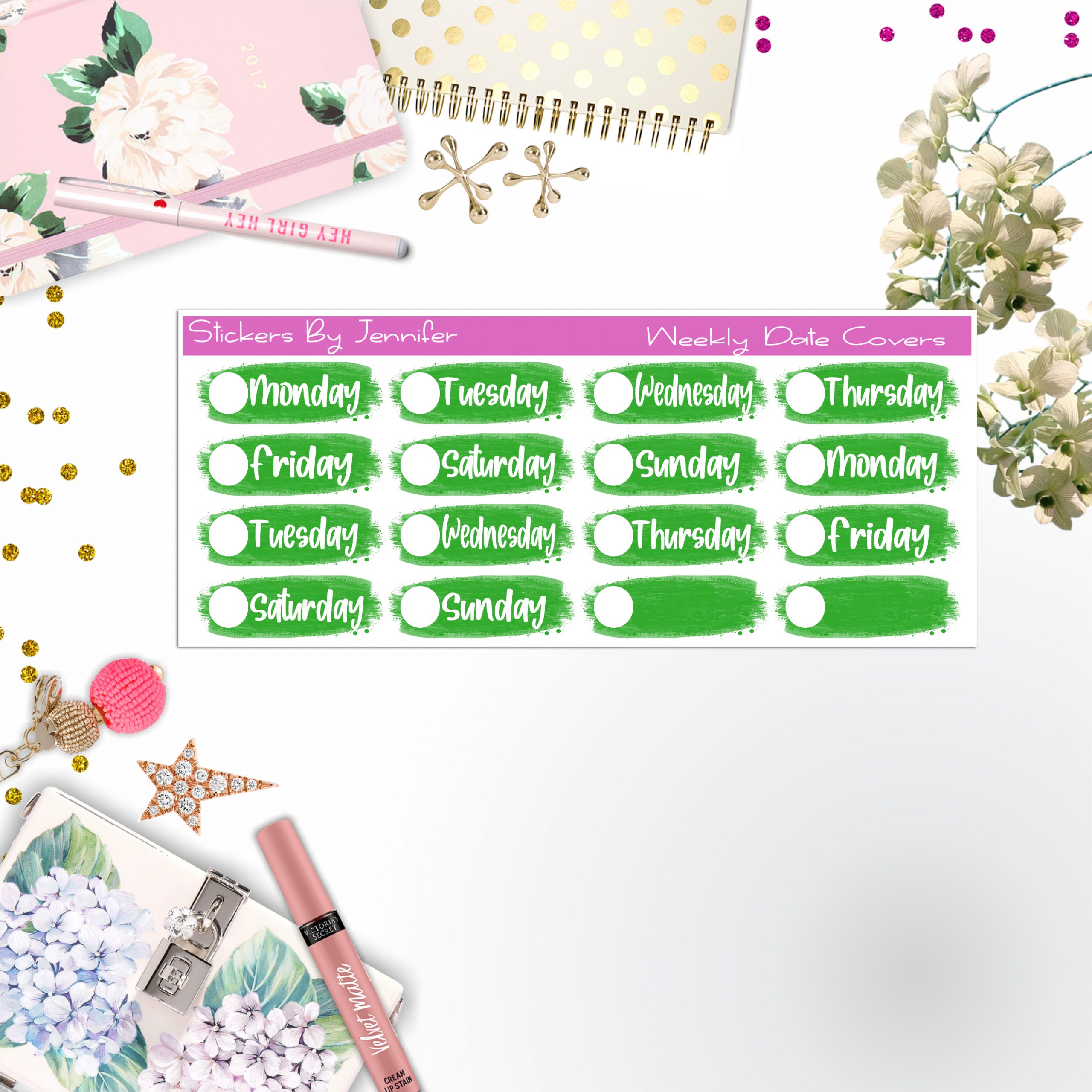 Weekly Date Covers 038 Planner Stickers, Journal Stickers, Functional Planner Stickers, Stationary Stickers