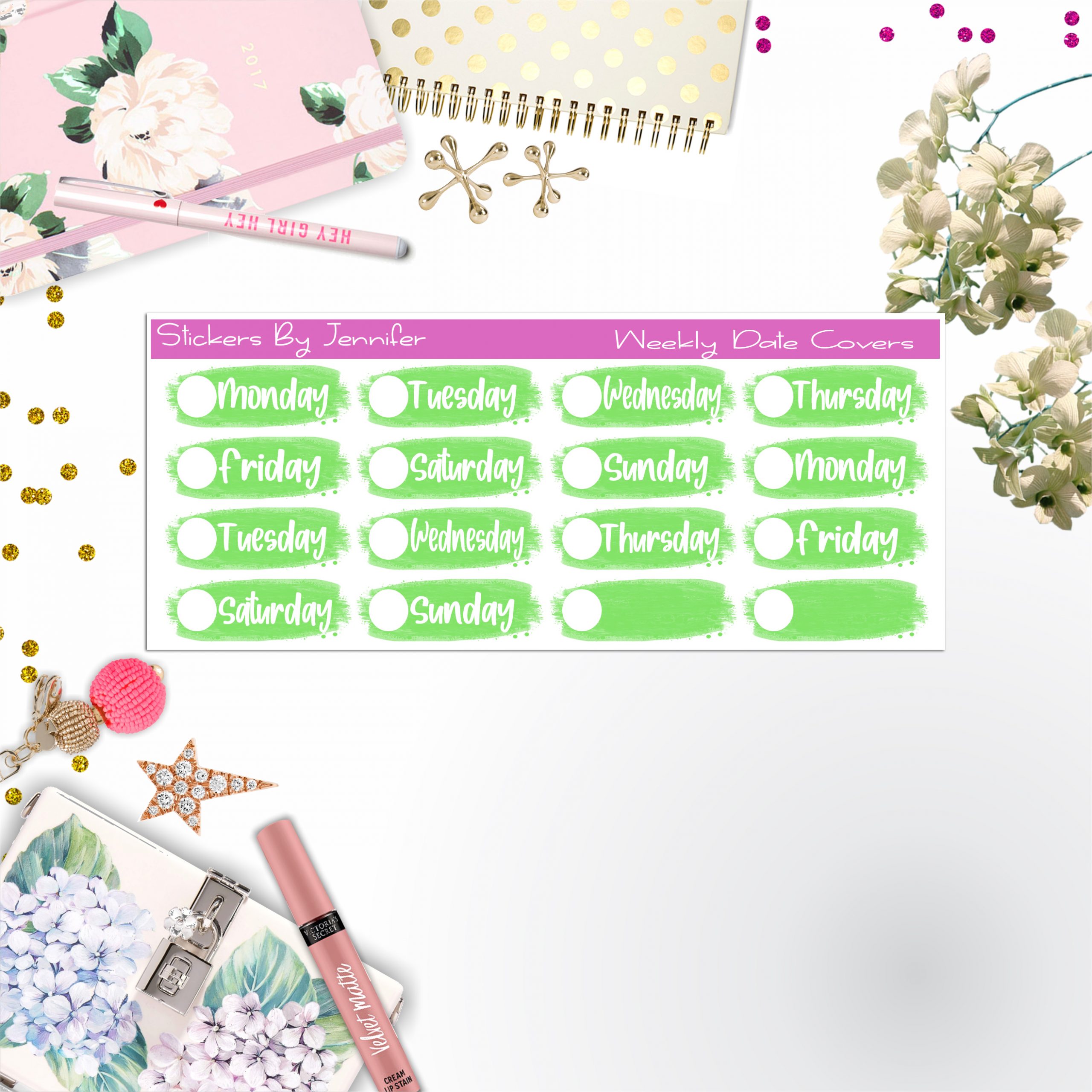 Weekly Date Covers 039 Planner Stickers, Journal Stickers, Functional Planner Stickers, Stationary Stickers