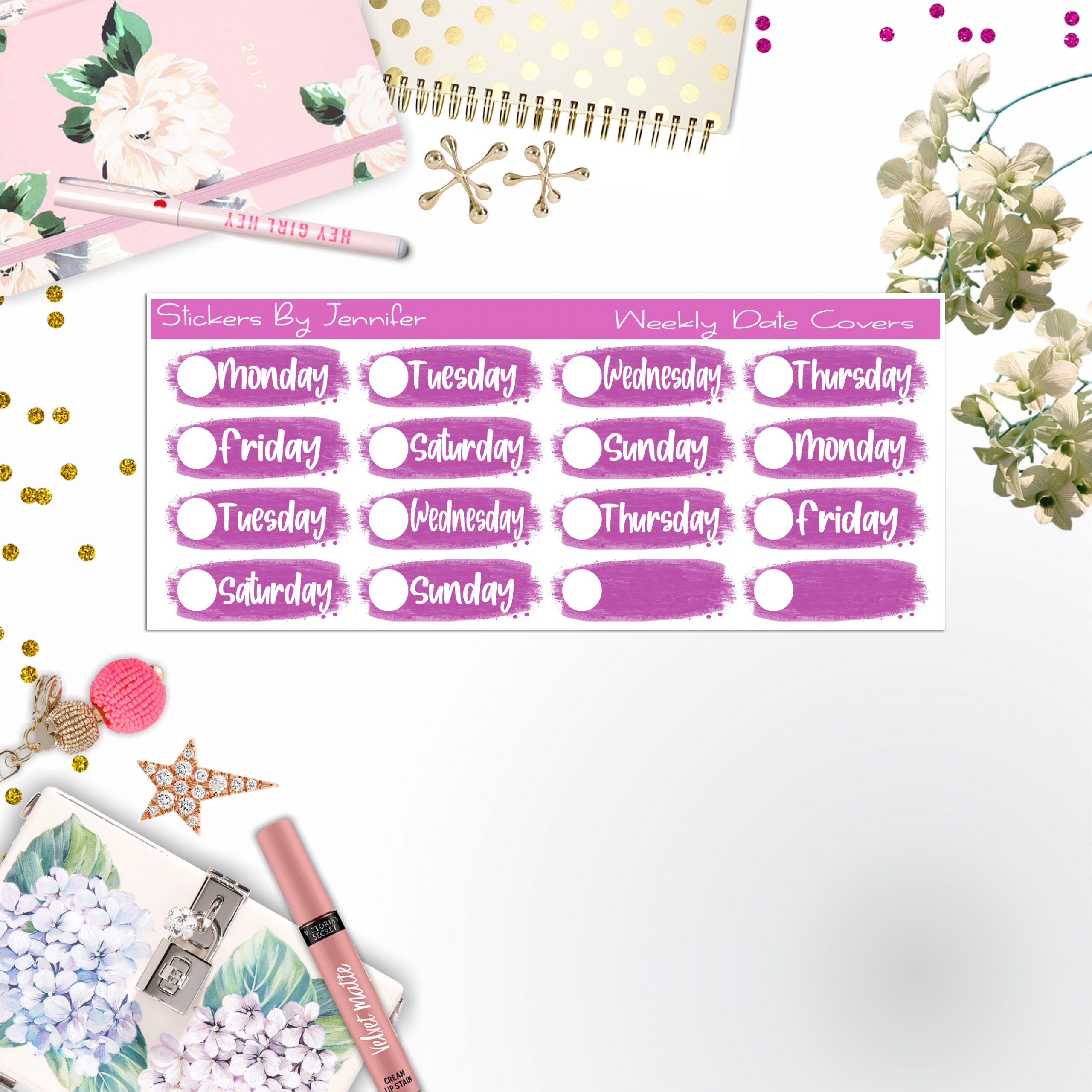 Weekly Date Covers 074 Planner Stickers, Journal Stickers, Functional Planner Stickers, Stationary Stickers