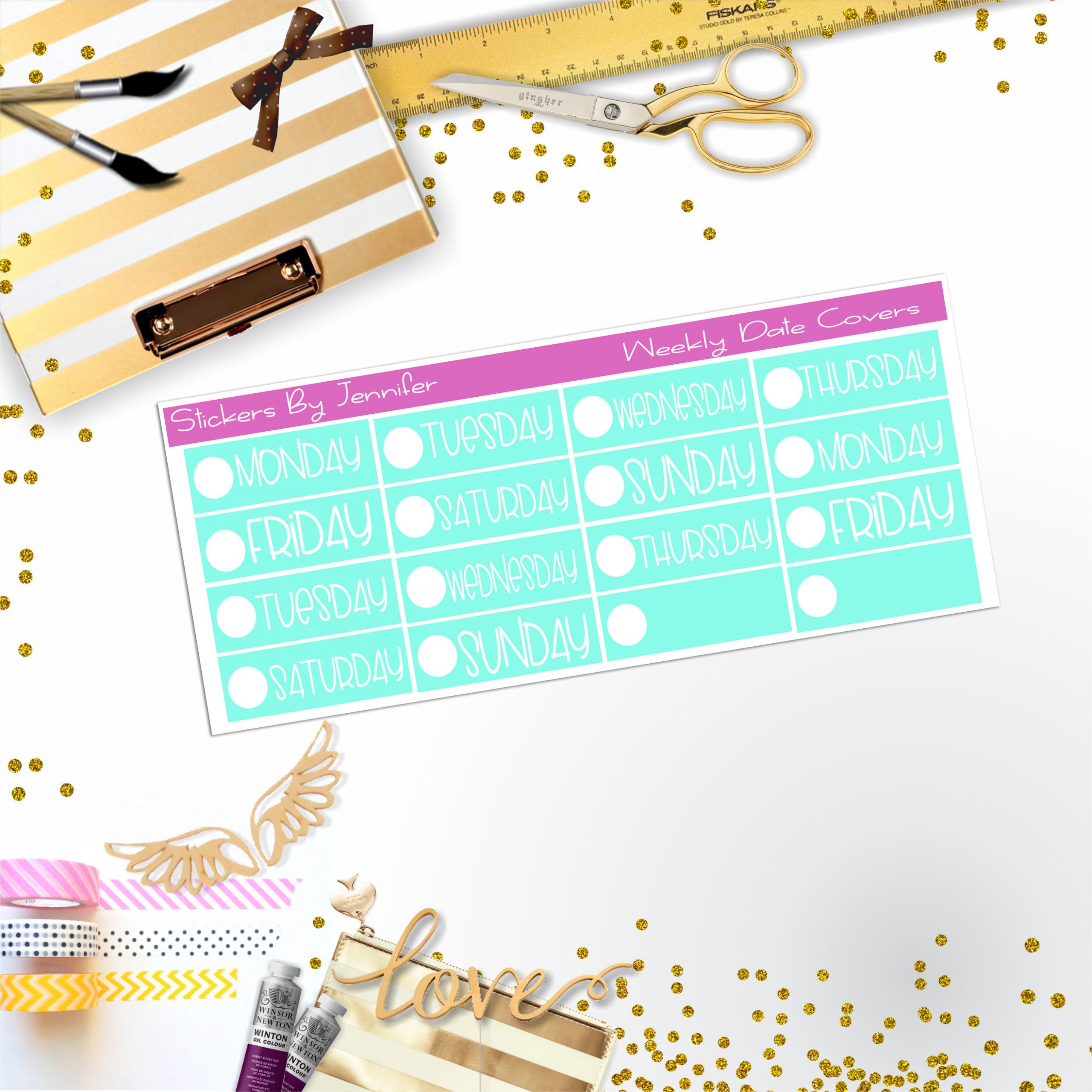 Weekly Date Covers P028 Planner Stickers, Journal Stickers, Functional Planner Stickers, Stationary Stickers