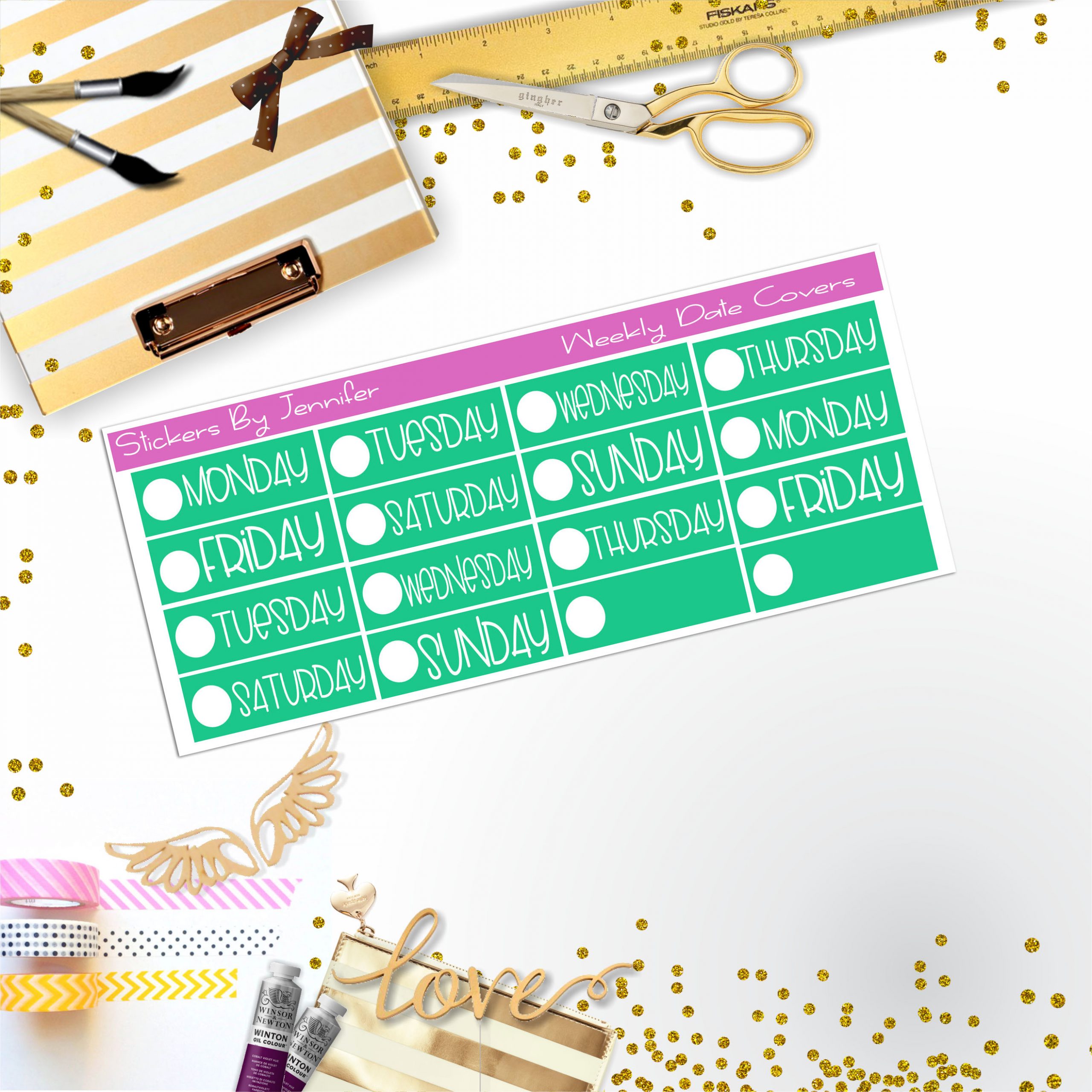 Weekly Date Covers P031 Planner Stickers, Journal Stickers, Functional Planner Stickers, Stationary Stickers