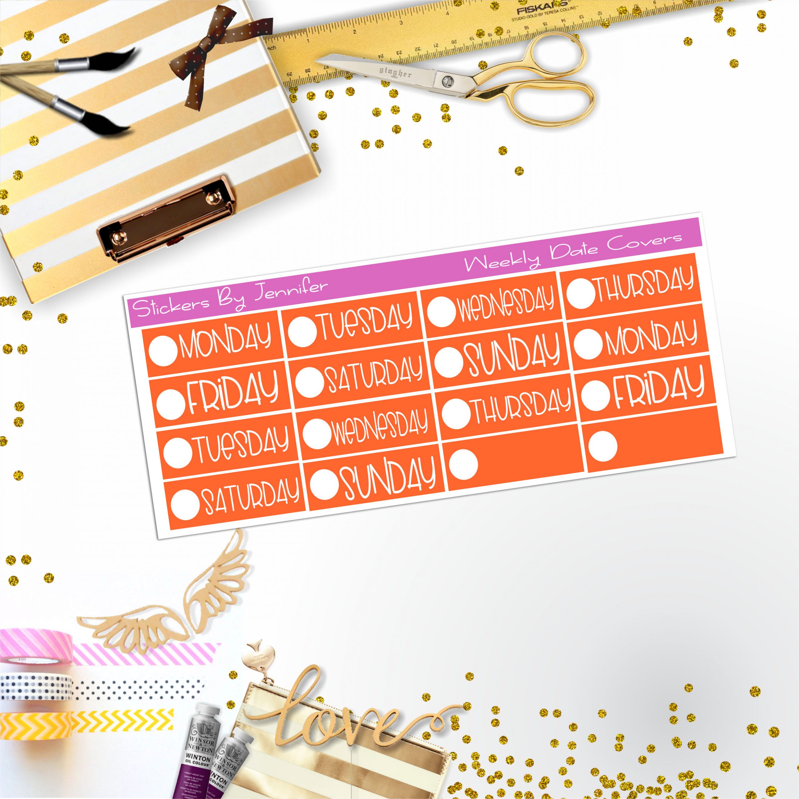 Weekly Date Covers P051 Planner Stickers, Journal Stickers, Functional Planner Stickers, Stationary Stickers