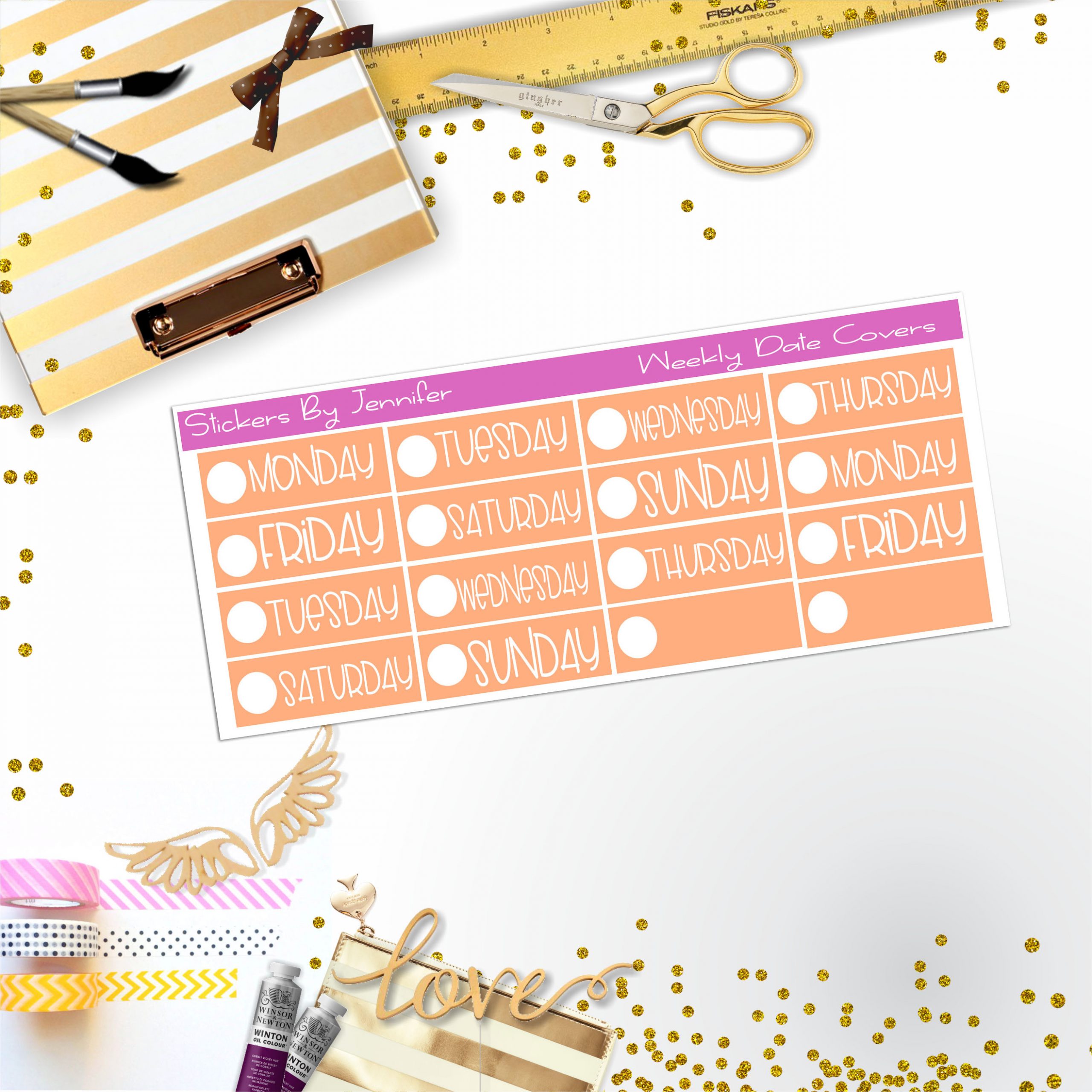 Weekly Date Covers P090 Planner Stickers, Journal Stickers, Functional Planner Stickers, Stationary Stickers