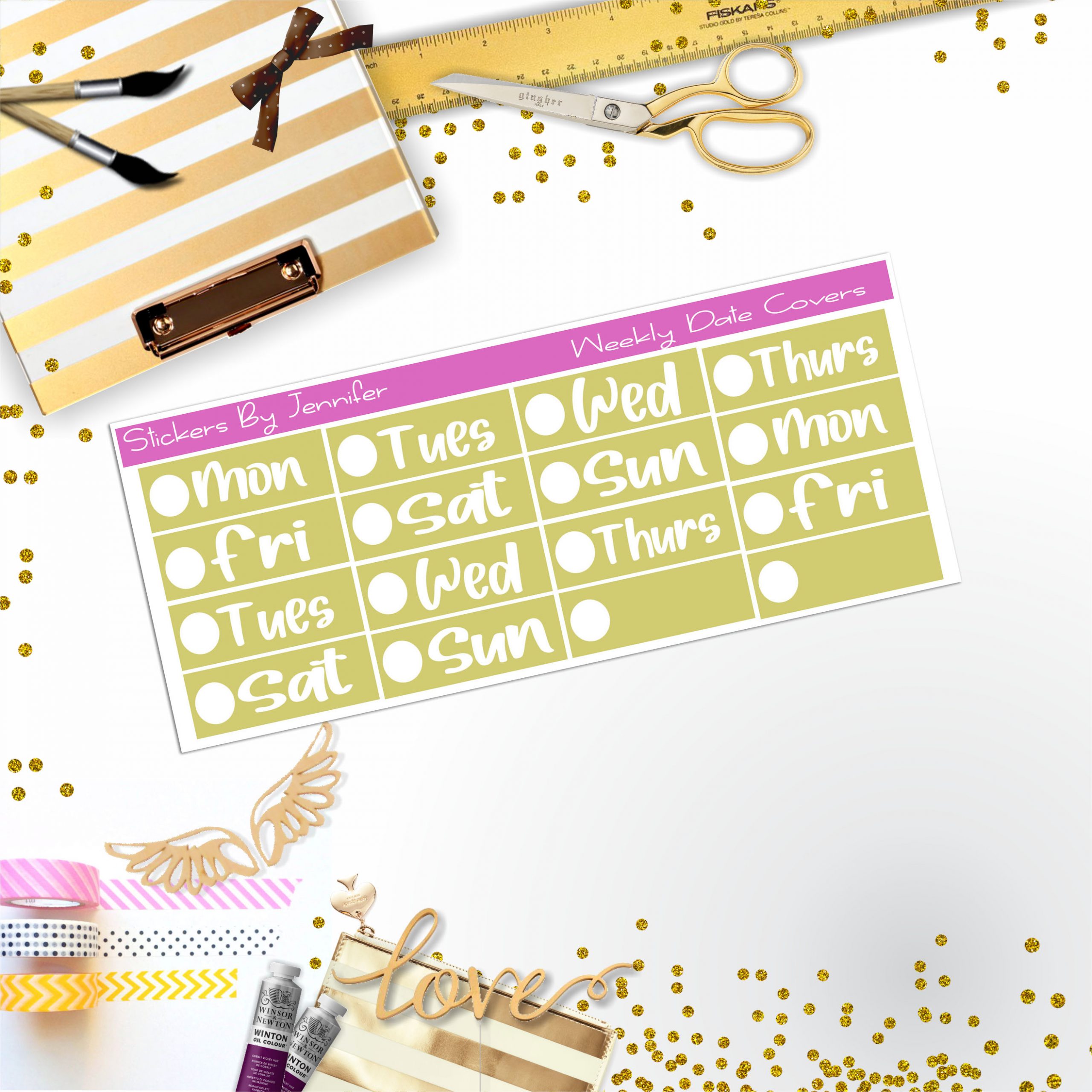 Weekly Date Covers R003 Planner Stickers, Journal Stickers, Functional Planner Stickers, Stationary Stickers