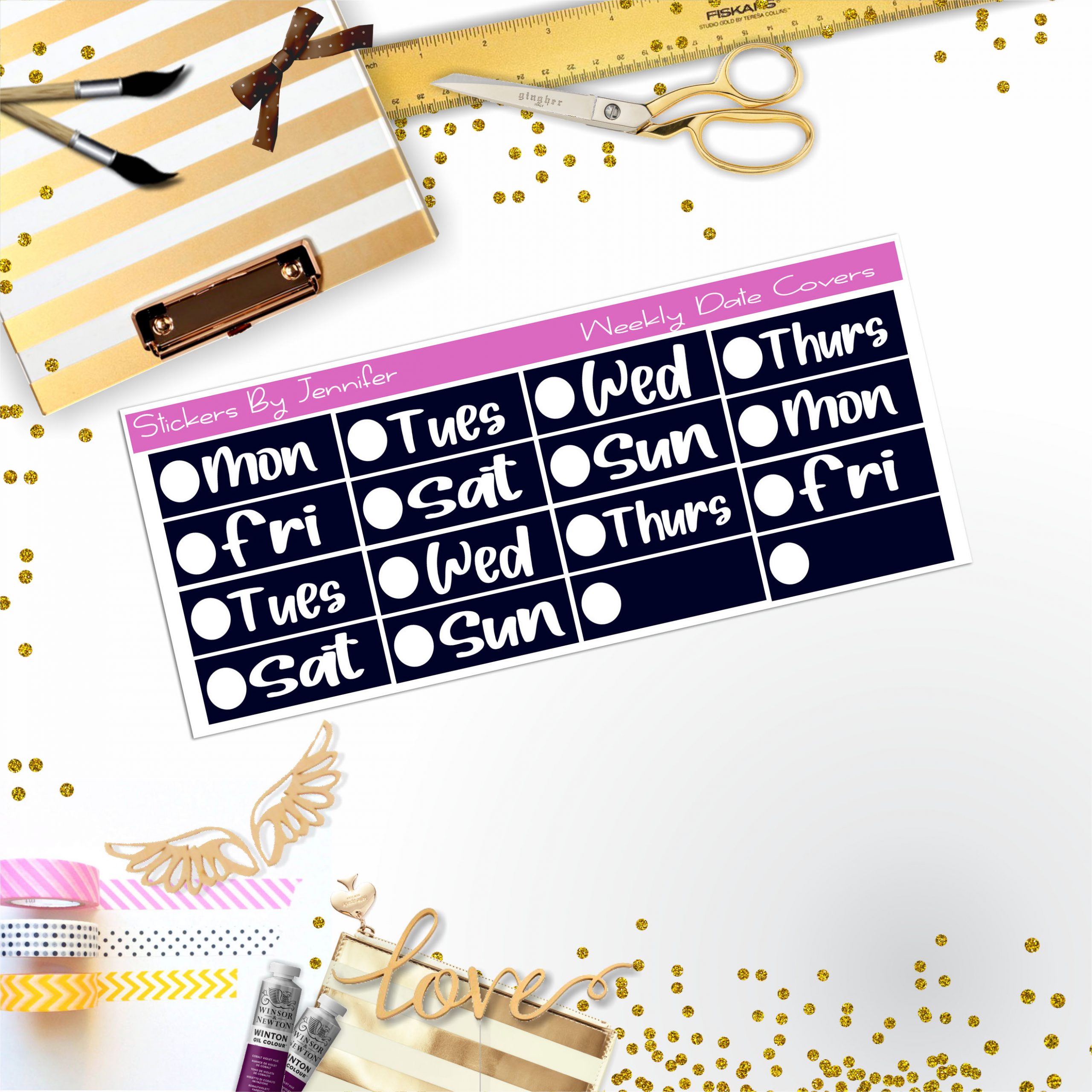 Weekly Date Covers R011 Planner Stickers, Journal Stickers, Functional Planner Stickers, Stationary Stickers